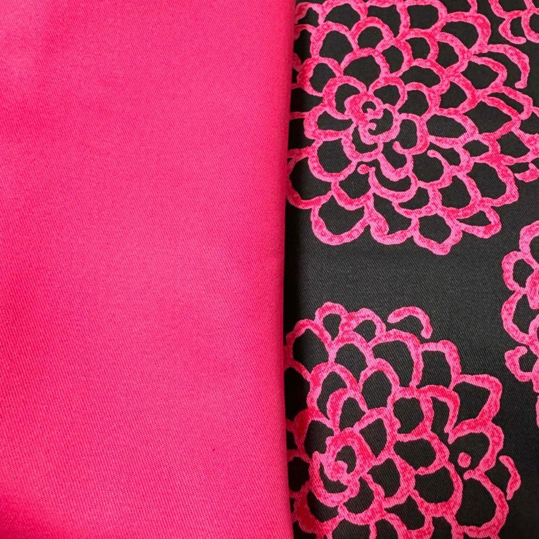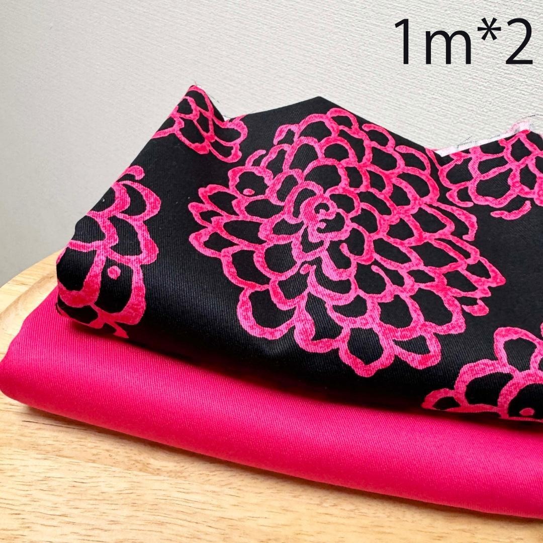 【1mずつ2枚セット】ダリア花柄(ダリヤ)&無地ツイル生地ピンク×ブラック