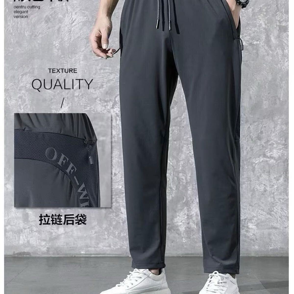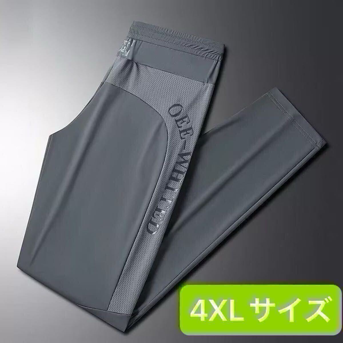 メンズ ジョガーパンツ イージーパンツ 接触冷感 アイスシルク カジュアルパンツ グレー 4XL