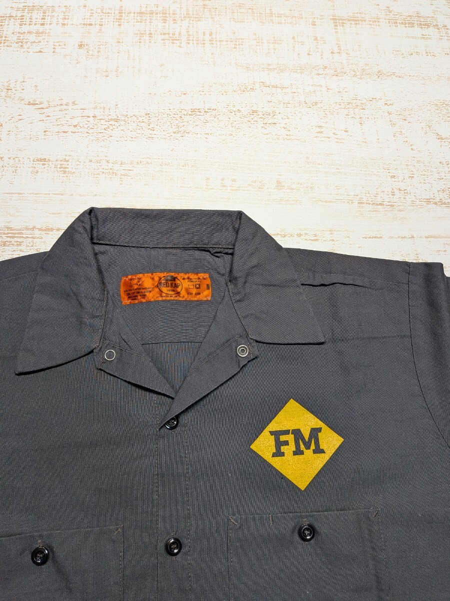 R85 ワーク シャツ L RED KAP 半袖 古着 バック プリント フロント 地 ビール クラフト ビア レストラン スタッフ ユニフォーム 醸造所 激