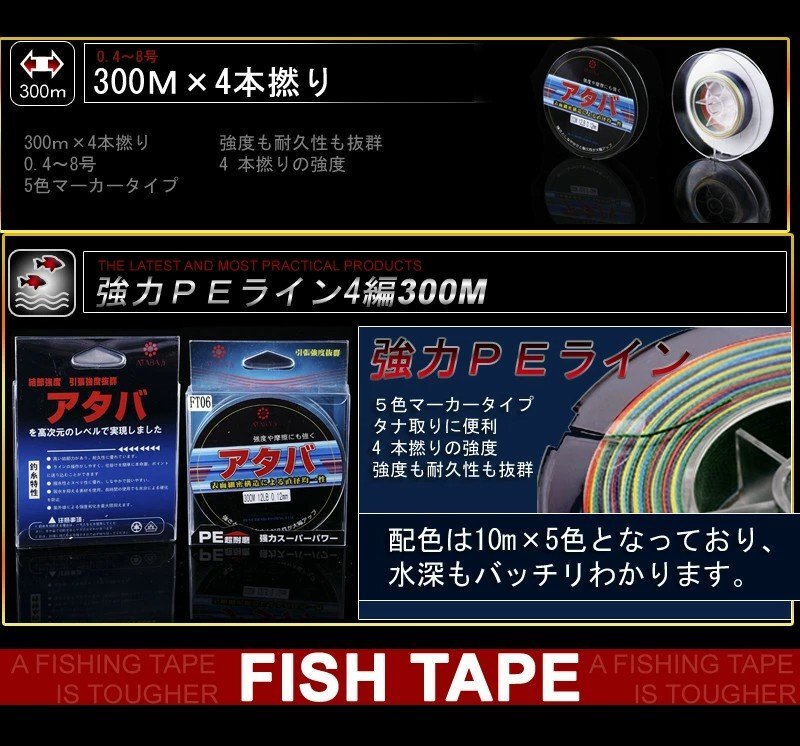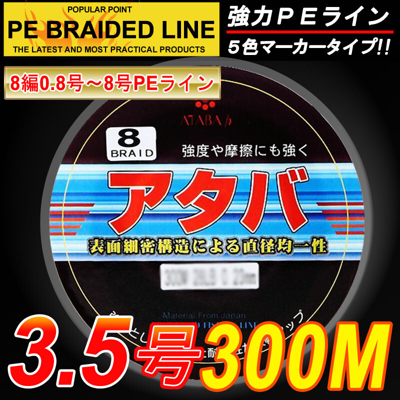 【90% OFF】★ 強度PEライン4編300M 3.5号5色30LB 釣り糸FT35 ★
