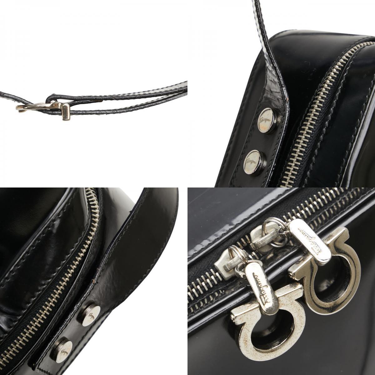 サルヴァトーレフェラガモ ガンチーニ ショルダーバッグ ブラック エナメル レザー レディース Salvatore Ferragamo 【中古】