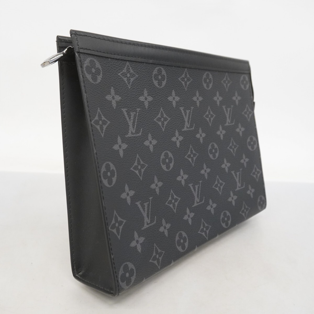 【5ic3911-h】ルイヴィトン クラッチバッグ モノグラム・エクリプス ポシェットヴォワヤージュMM M61692 ブラック グレー【中古】メンズ