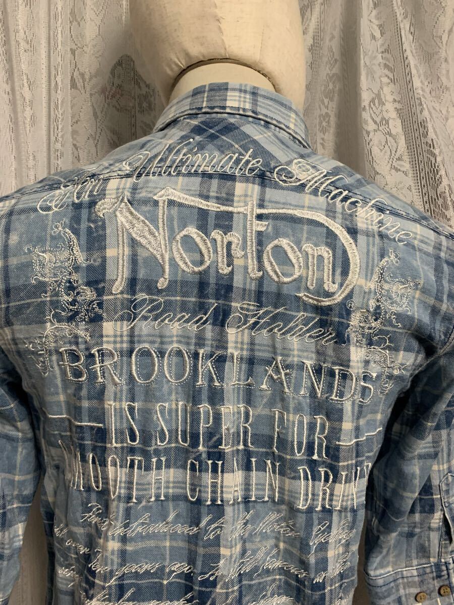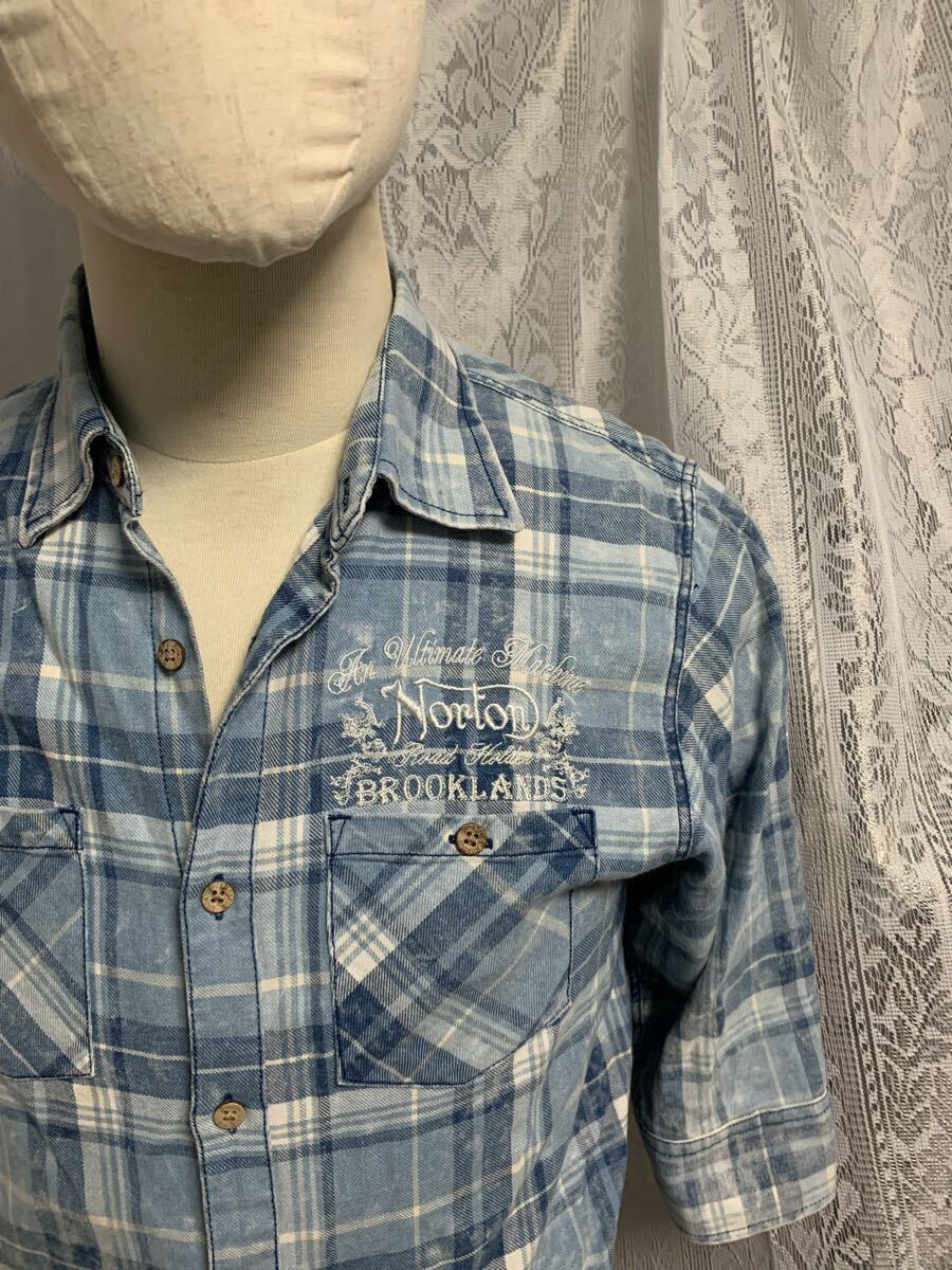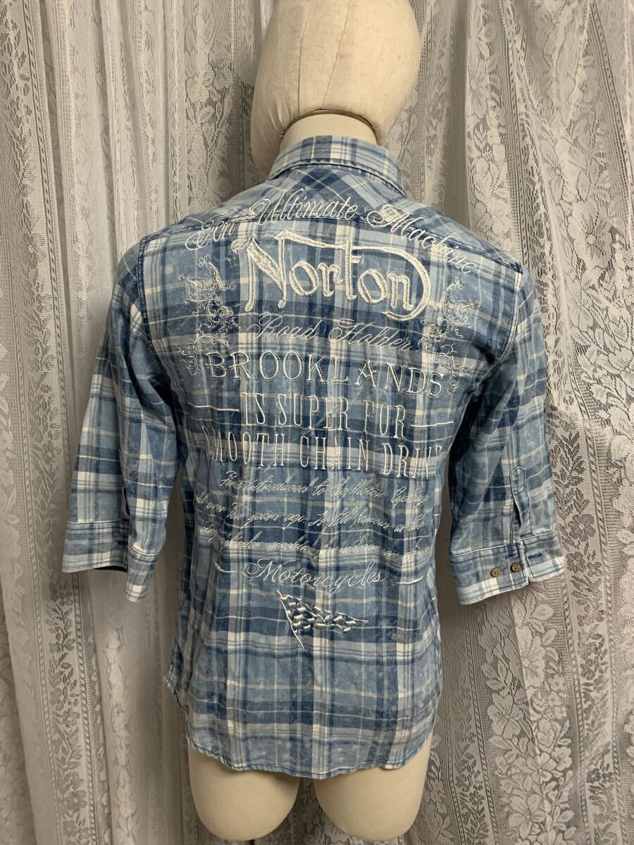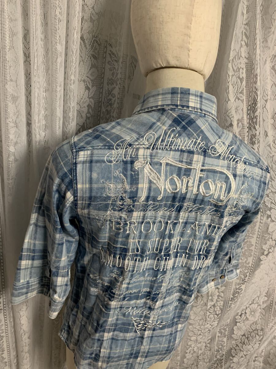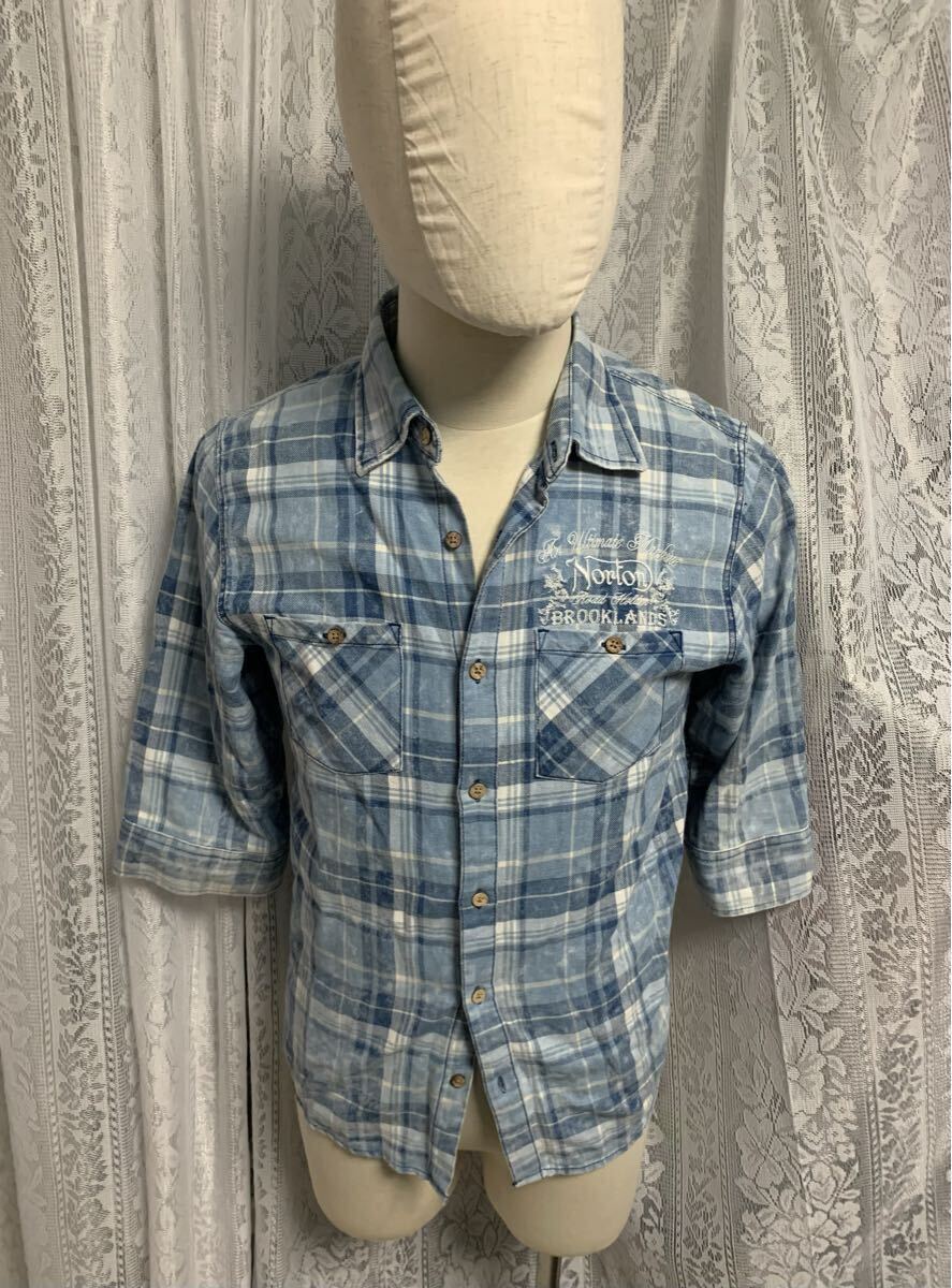 Norton ノートン 七分丈 シャツ 刺繍ロゴ バイカー チェック Mサイズ