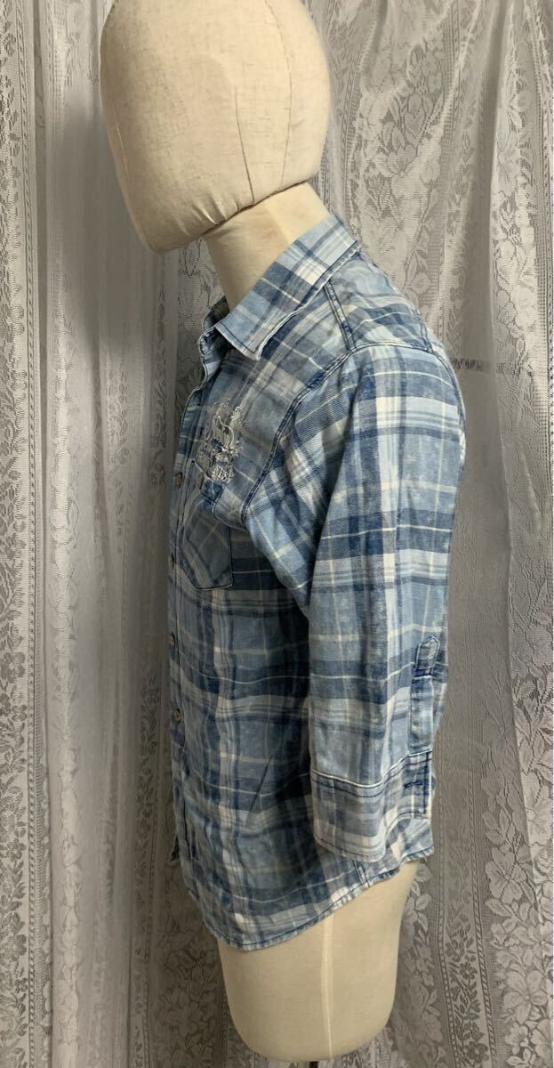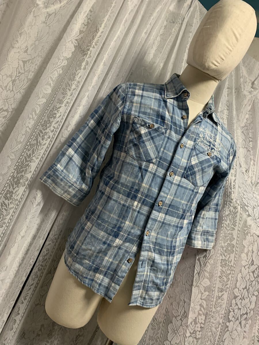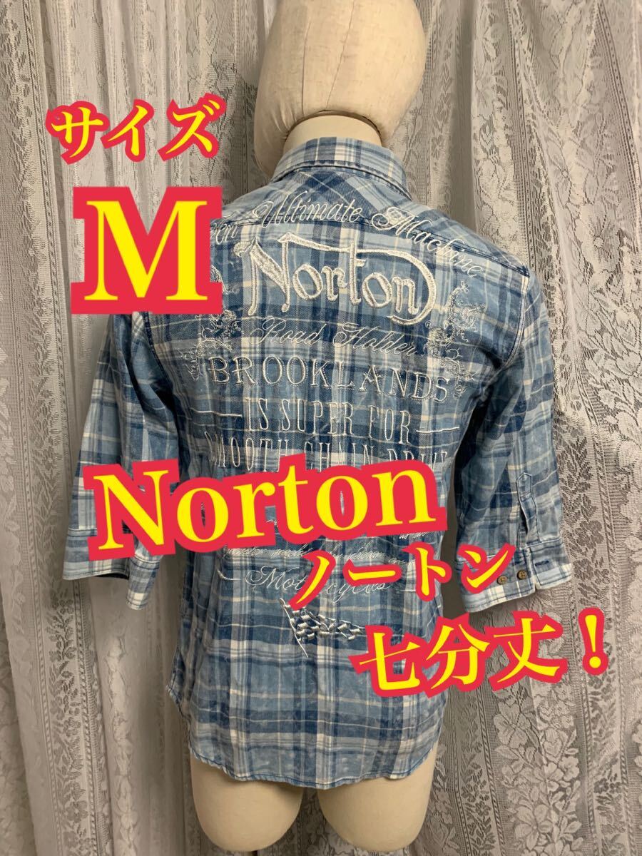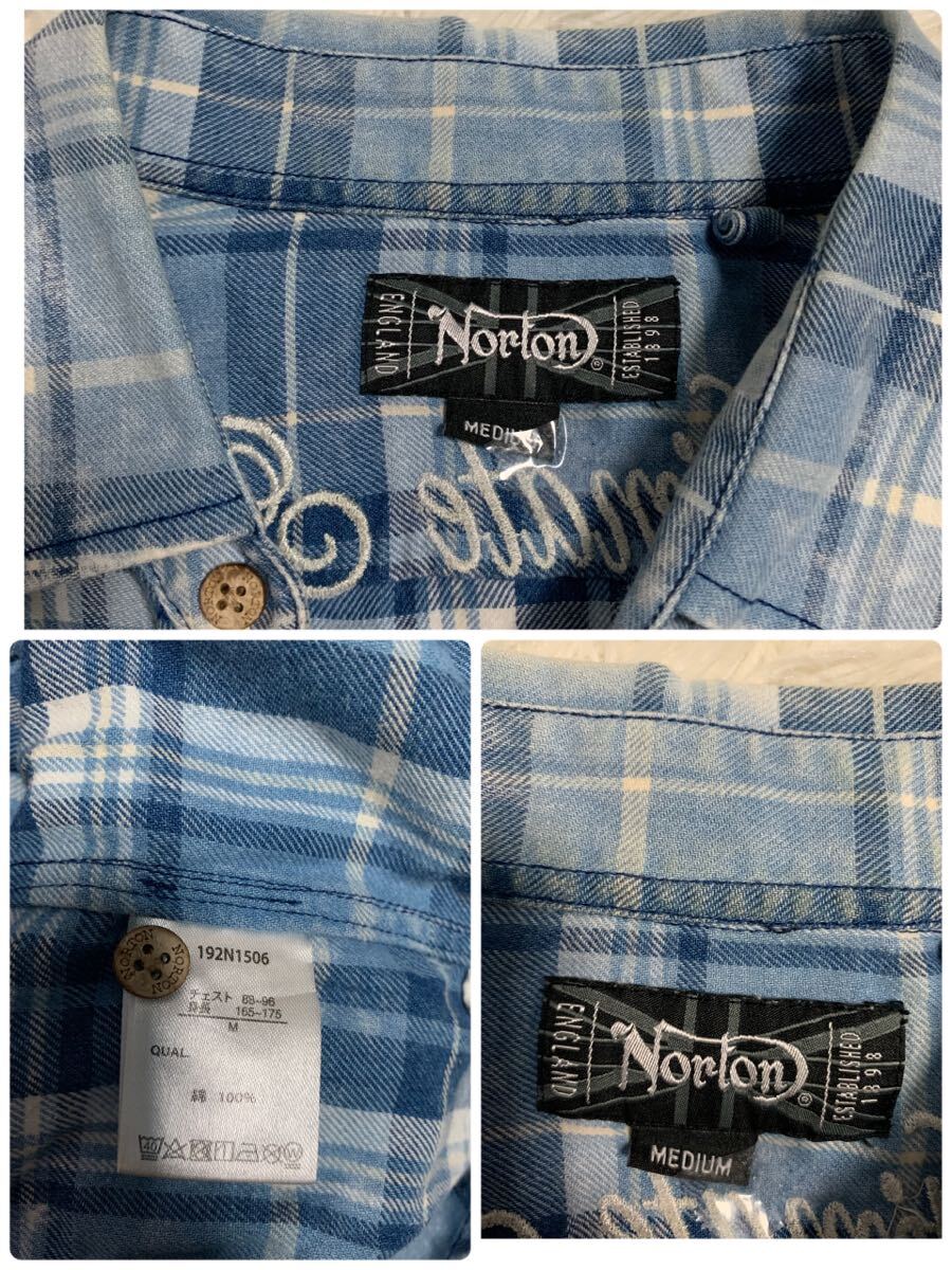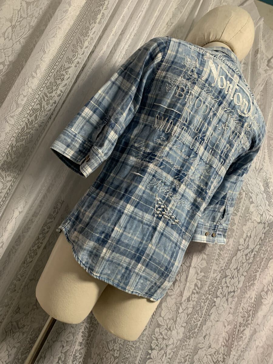 Norton ノートン 七分丈 シャツ 刺繍ロゴ バイカー チェック Mサイズ