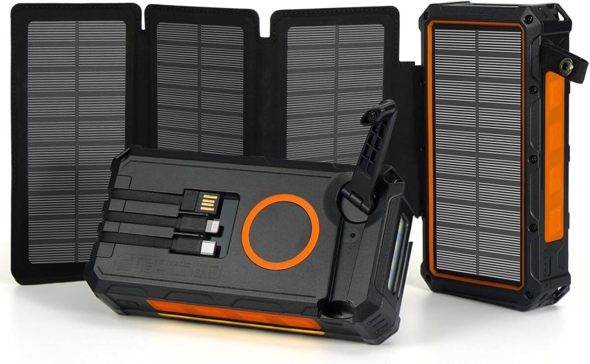 LAMA ソーラーモバイルバッテリー【新登場】40000mAh大容量 4枚ソーラーパネル 手回し発電 6台同時充電 LEDライト付き防水