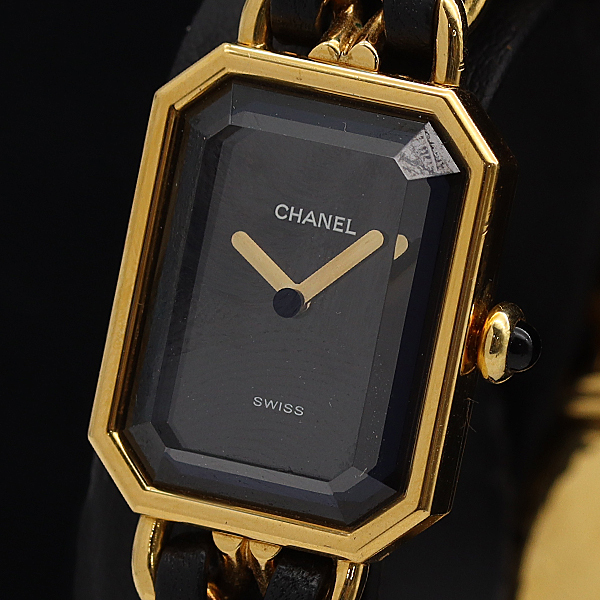1円 稼働 シャネル プルミエールS 98781 QZ ブラック文字盤 レディース腕時計 1556610 9DIT MST