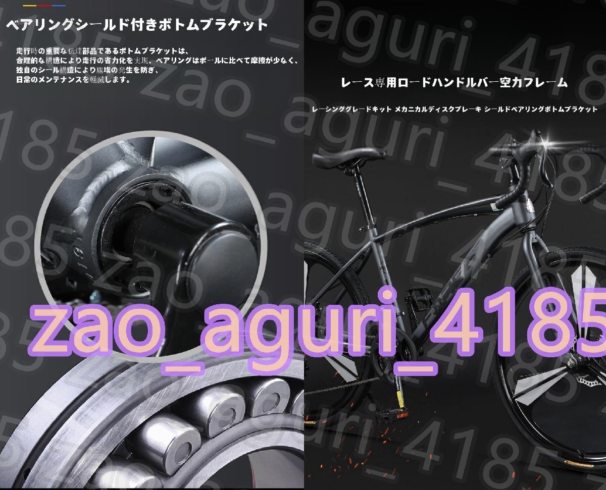 ベアリング密封されたボトムブラケット走行時の重要な伝達部品であるボトムブラケットは、ボールに比べて摩擦が少ない合理的な構造で、日常のメンテナンスを軽減します。 | レーシングサドル高品質の素材はライディングの疲労を軽減し、座っているときに疲れません。合理的なデザインにより、ライディング中に力を発揮しやすく、耐久性が高くなります。 | ロードレース用ハンドルバー新型レーシングベントハンドルバーを搭載し、走行中に様々な乗車姿勢を変えることができ、見た目も明るくトレンド感のあるデザインとなっております。 |