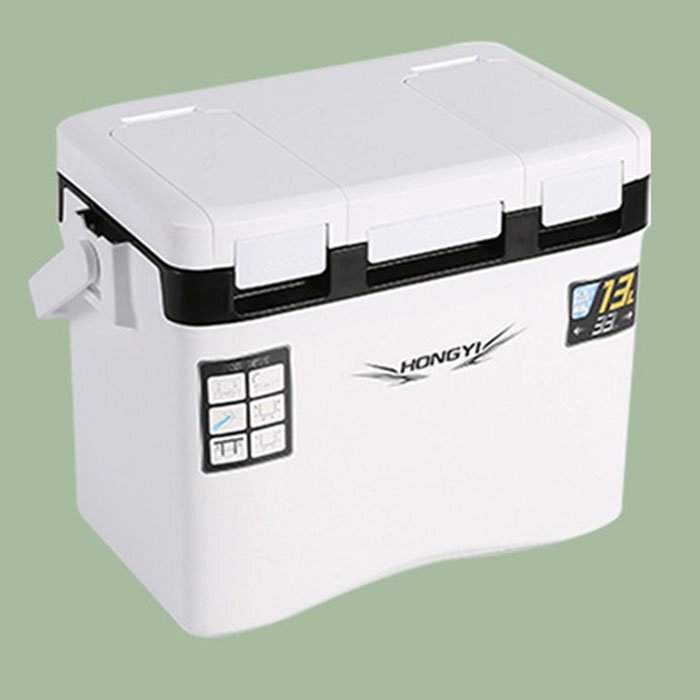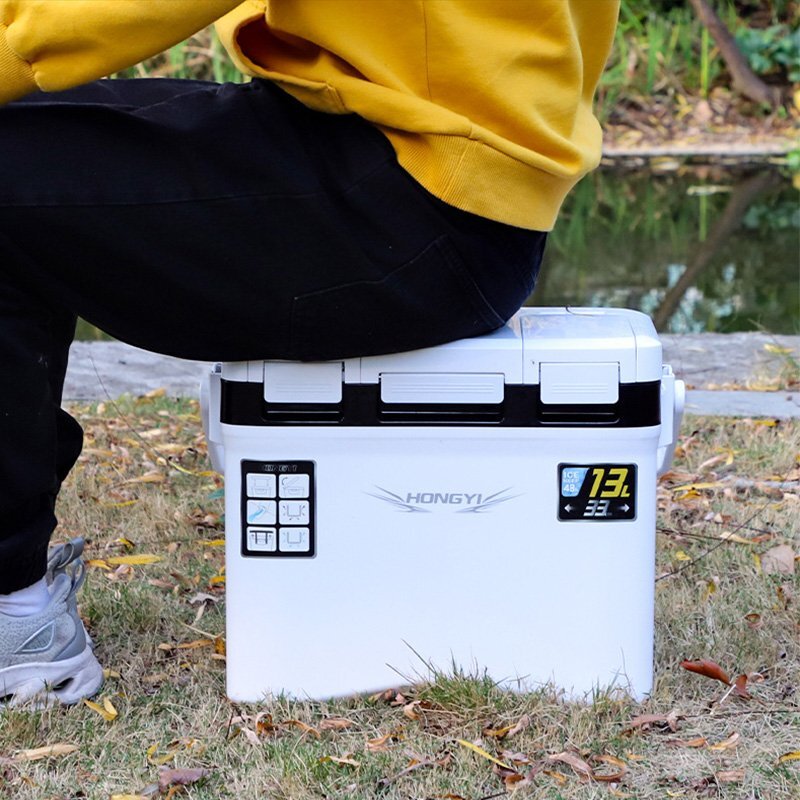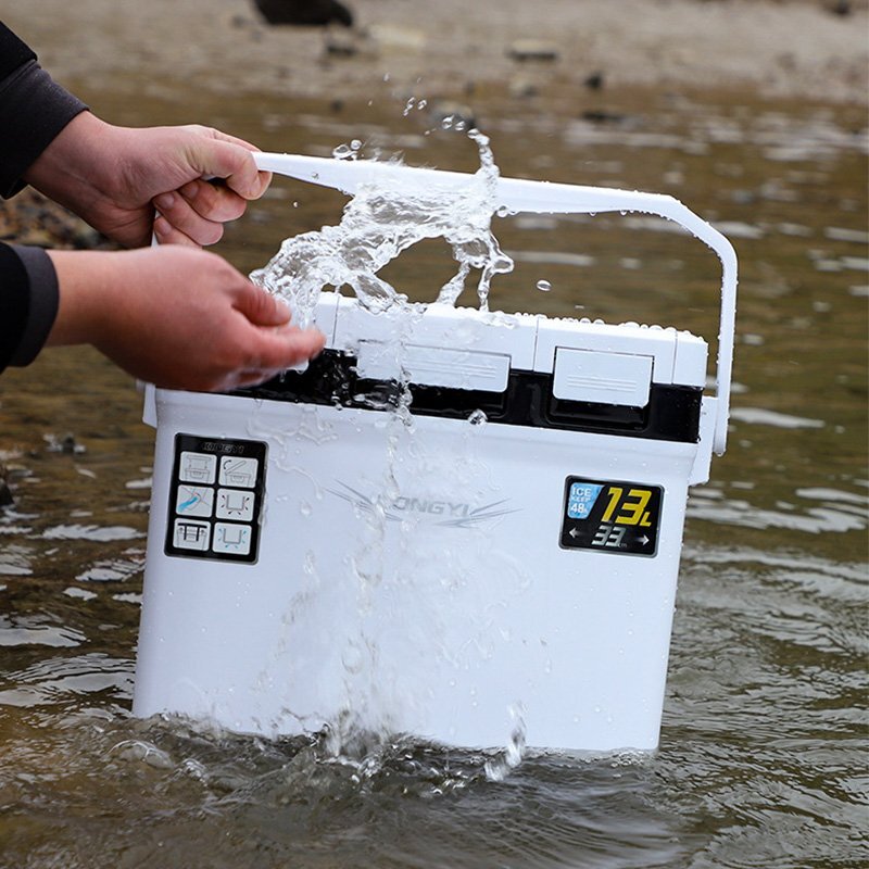 釣り用 クーラーボックス 小型13L ふた両開き 座れる頑丈ボディ 防水 保温保冷 ハンドル/肩ベルト付き 保冷力24-48h (ホワイト・窓付き)
