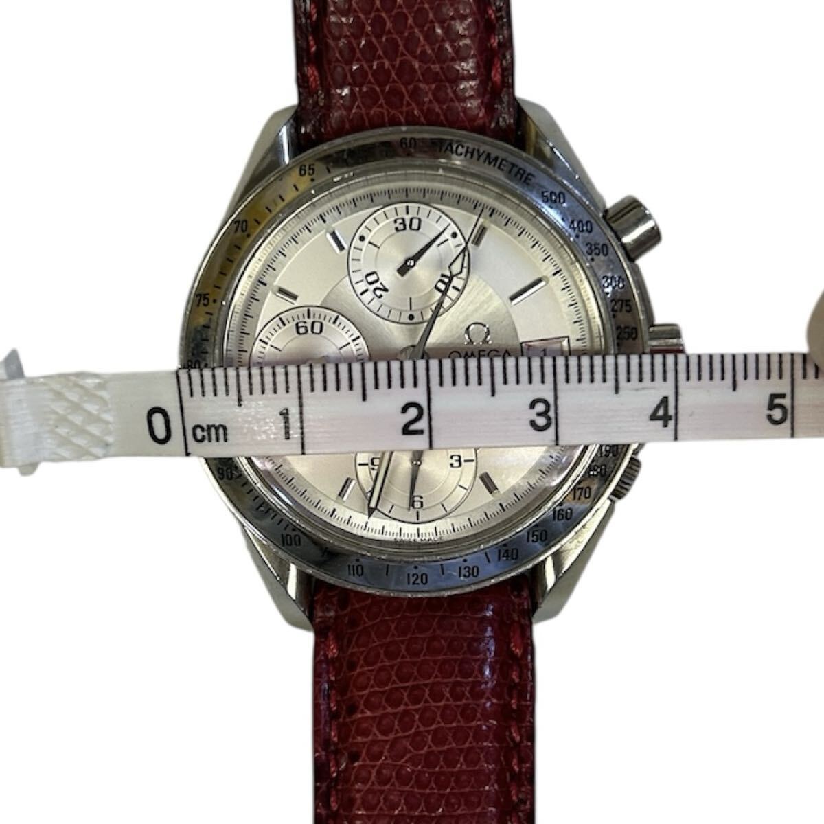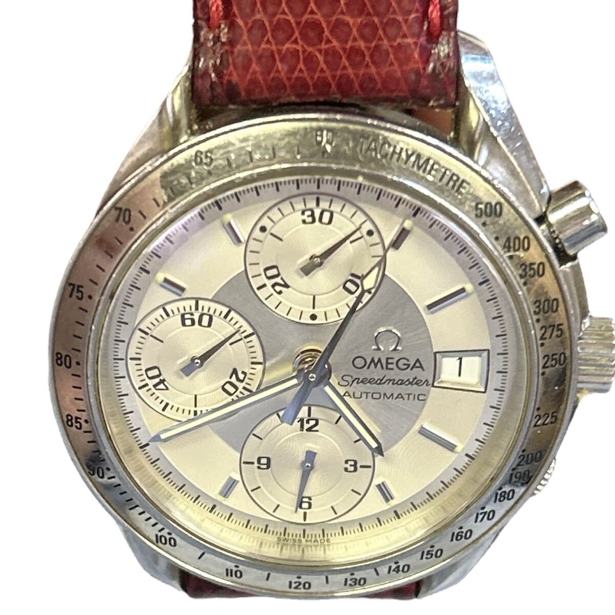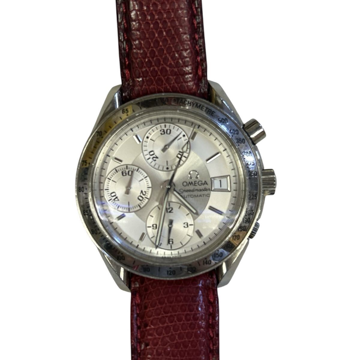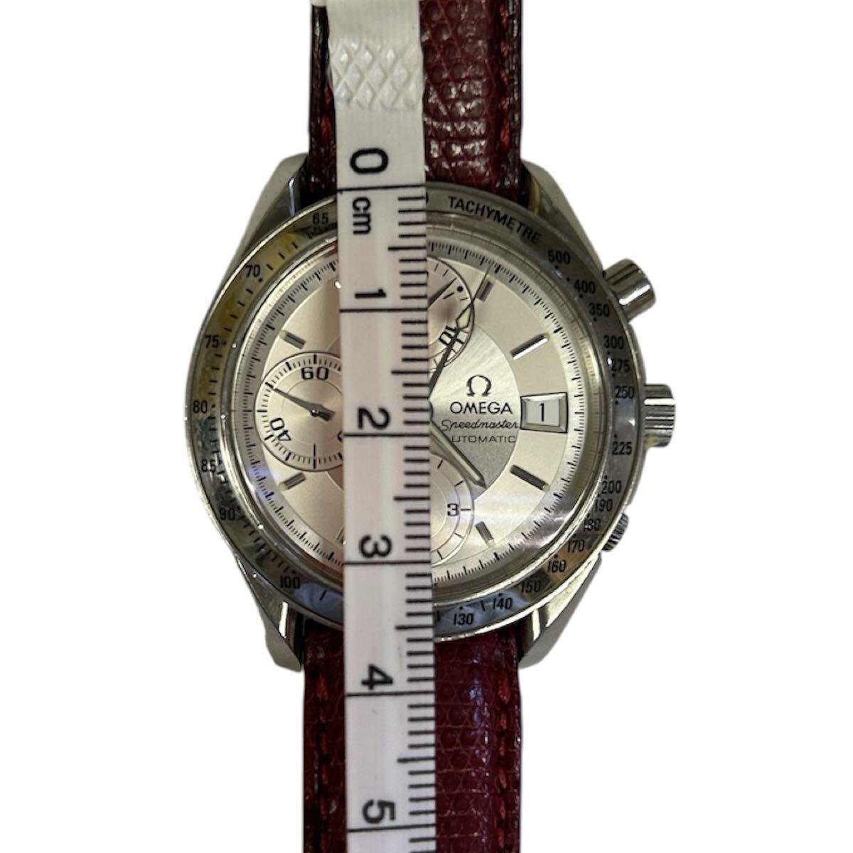 オメガの人気シリーズ「スピードマスター オートマティック(自動巻き)」腕時計です。クロノグラフ機能付き、シルバー文字盤に日付表示を備えています。裏蓋にはスピードマスターのシーホース刻印が入っております。