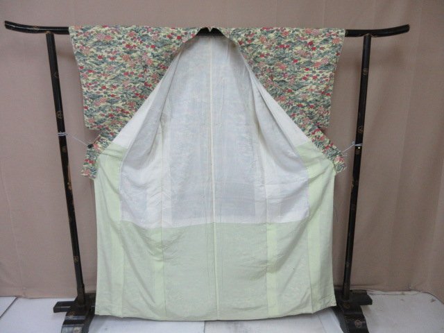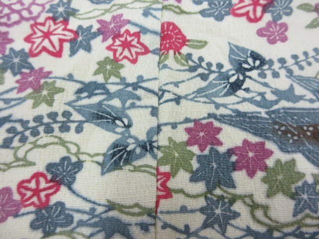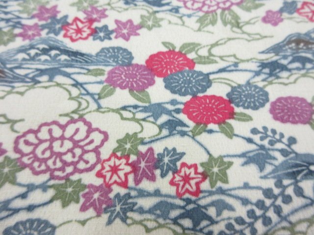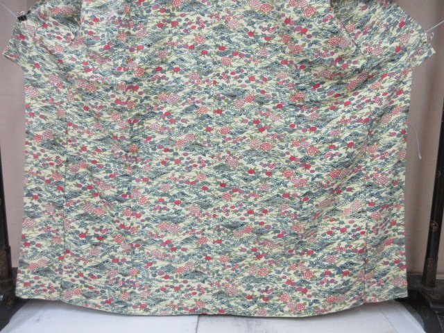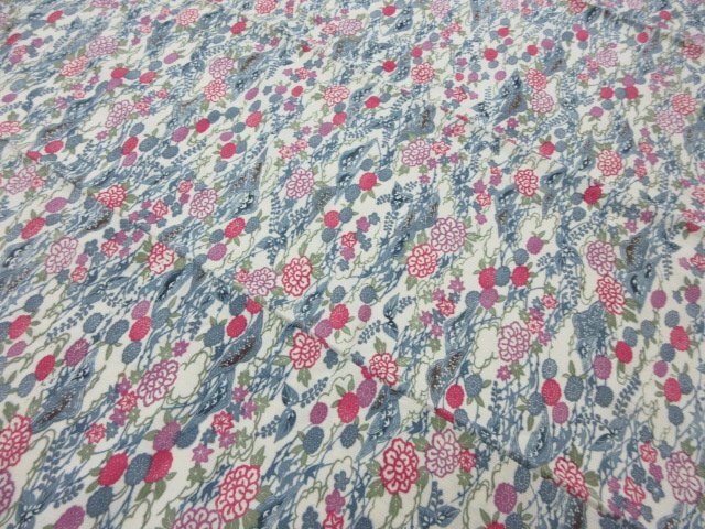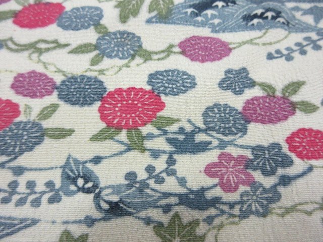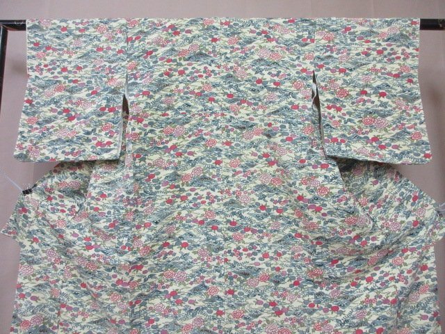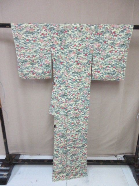 商品名 | 1円 中古 小紋 正絹 着物 縮緬 和装 和服 雲 四季花 草花 お洒落 高級 袷 身丈154cm 裄65cm【夢職】★ |