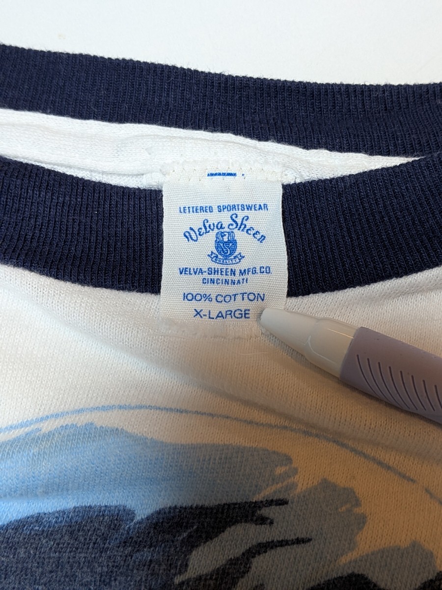 USA製 Velva Sheen リンガーTシャツ XL Paul Baby プリント ビンテージ風 ホワイト ネイビー