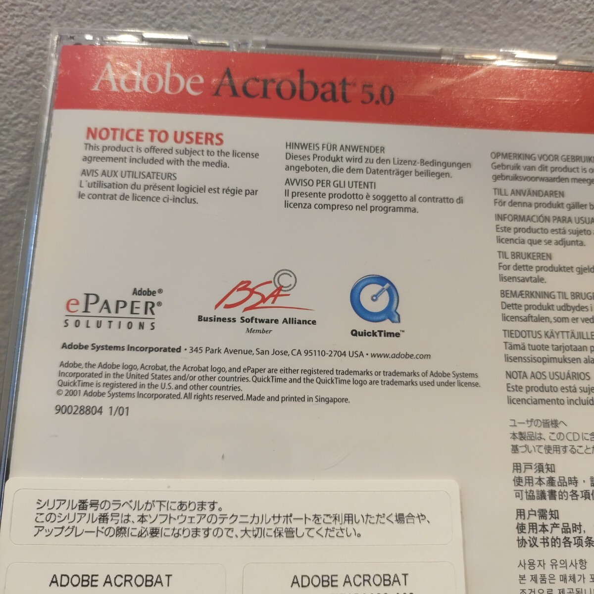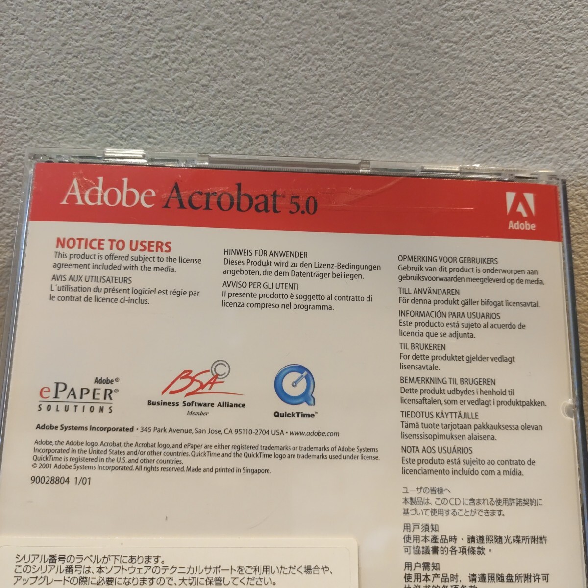 Adobe Acrobat 5.0 のアカデミック版です。動作環境は古いWindows向けですが、パッケージやディスクが揃った希少品です。