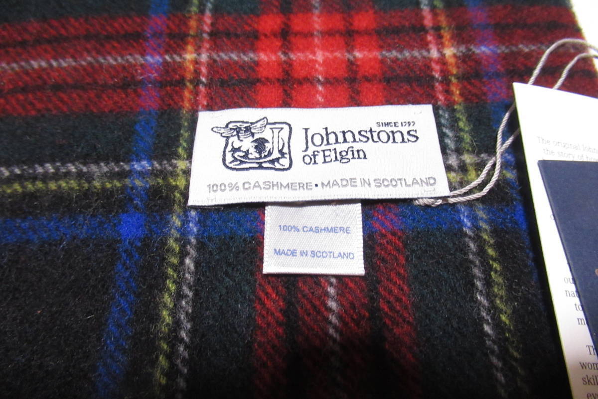 ★JOHNSTONS OF ELGIN ジョンストンズ カシミア マフラー タグ付き ブラックスチュワート