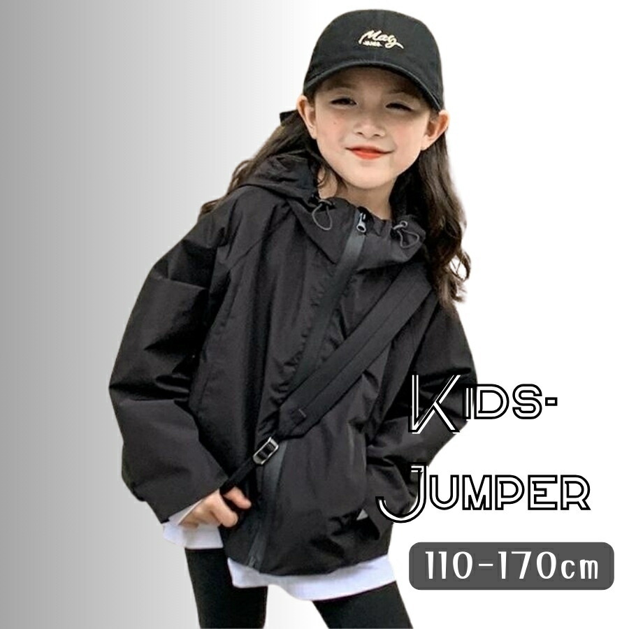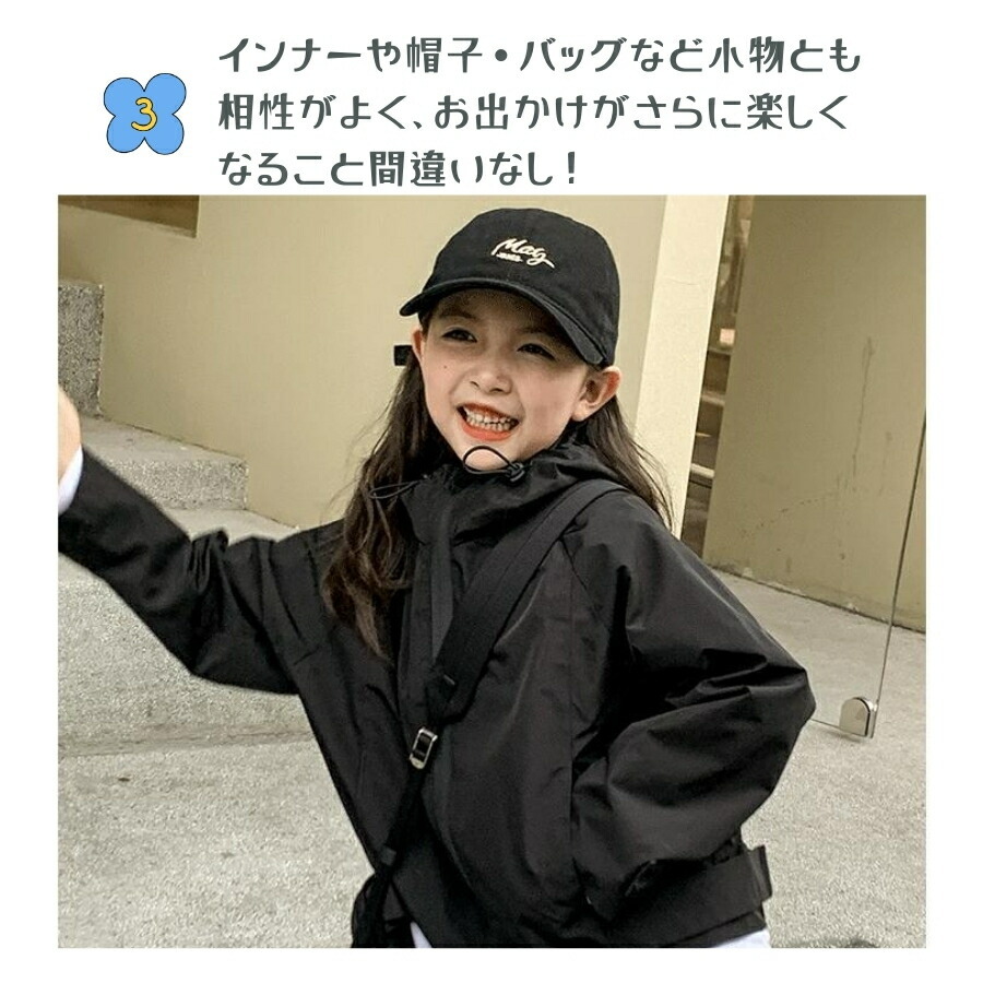 商品名 | ブラック 150cm ウィンドブレーカー 遮風 あたたかい 韓国子供服 防水 フード付き 春秋冬 動きやすい アウター |