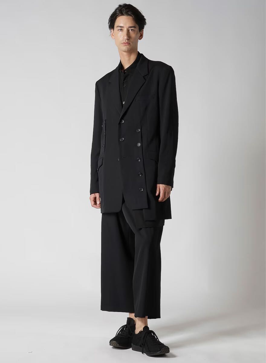 Yohji Yamamotoを代表するウールギャバジン生地を使用したアシンメトリーデザインのジャケットです。