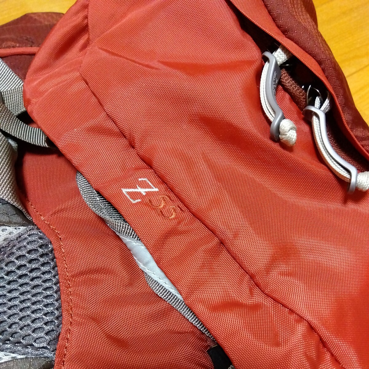 ・ピッケル、もしくはトレッキングポールなどをくくりつけるコード付き・フロントの大型バケットポケット