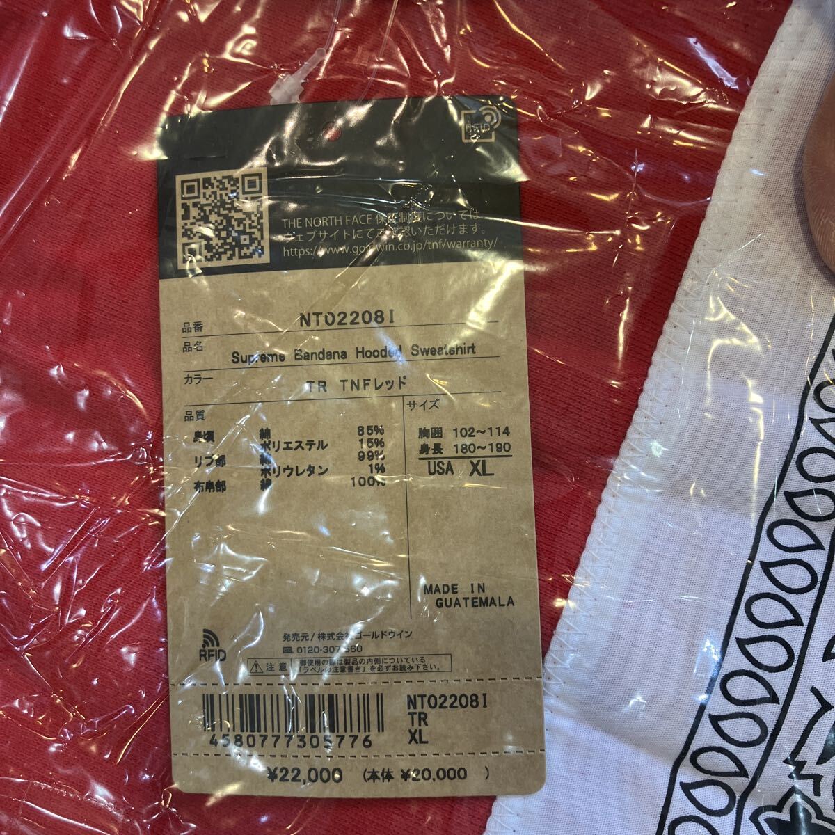 Supreme × THE NORTH FACE コラボ商品、Bandana Hooded Sweatshirt(NT02208I) TR TNFレッドのXLサイズです。