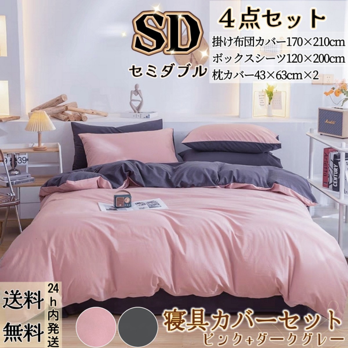 布団カバー 4点セット セミダブル 掛け布団カバー ボックスシーツ 枕カバー 洋式・和式兼用 布団カバーセット 寝具カバーセット ベッド用 布団用 ピーチスキン 肌に優しい 吸湿性に優れる 速乾 通気 冬・夏兼用 洗い替え 新生活