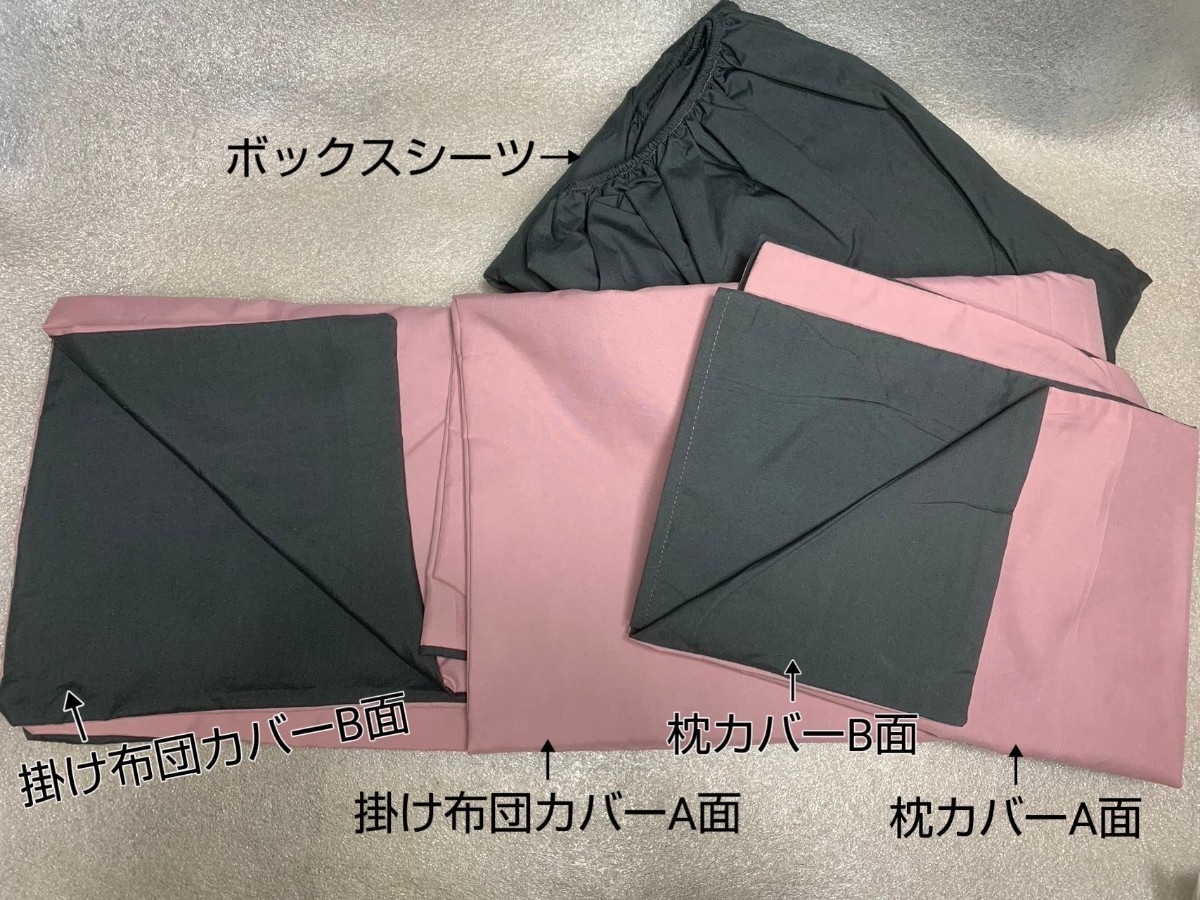 ポリエステル100%。きめ細やかな「ピーチスキン加工」なので、柔らかい生地が肌に優しい、快適に感じることができます。素肌に触れるものために防ダニ防臭加工を施しています。綿素材と比べてしわになりにくく、乾きが早いです。繰り返し洗濯しても丈夫です。