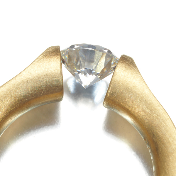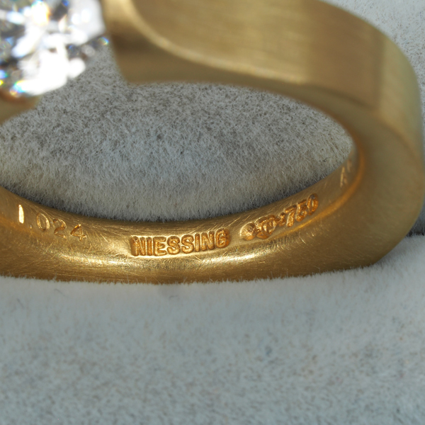 ニーシングセッティング と呼ばれる地金の張力のみで挟み込まれたアイコン的デザインが見事な ドイツのモダンジュエラー ニーシングの美しいリング。滑らかなフォルムに1ctアップの厳選ダイヤが素晴らしい輝きを放ちます。このサイズのニーシングのテンションリングはめったにお目に掛かれませんのでお早めにどうぞ! |