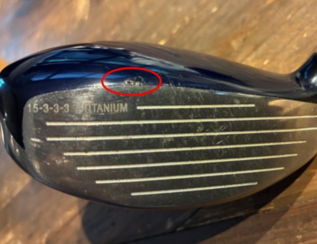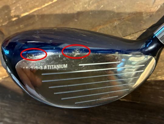 *写真赤丸印のとおりFW及びUTのフェイスとクラウンの間の塗装に剥げがあり修復跡がありますが、アドレスした感じ気にならない程度かと思います。