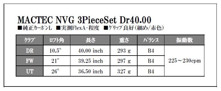 ★ 身長125~140cm程度のジュニア必見!MACTEC NVG DR FW UT 3本セット FLEX:L(実測A-程度)★