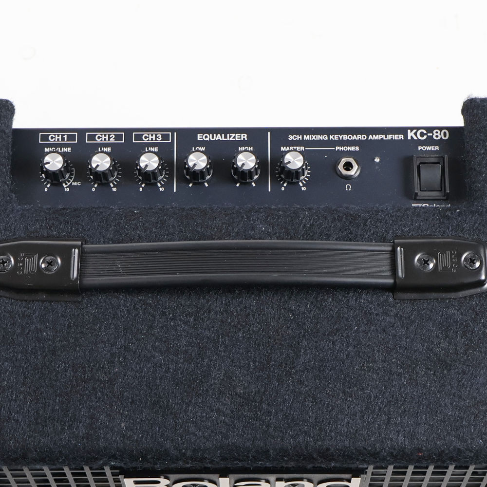 Roland KCシリーズは、圧倒的な高音質を誇るキーボード・アンプで、柔軟性の高いミキシング機能と、優れた耐久性により、20年以上にわたり世界中のキーボーディストから絶大な信頼を得ています。新KCシリーズでは、従来の高い品質基準を継承しながら、更なる音質の向上と出力アップをはかりました。ステージ上で演奏するキーボード・サウンドを、常に最高の状態で再生することができます。KC-80の最大出力は50W、3系統の入力チャンネルを搭載しました。専用AUXインプット、マイクの接続が可能なXLR端子も装備しているので、さまざまな楽器を接続してミキシングすることができます。また、新たに開発されたカスタム仕様の25cm(10インチ)ウーファーとツィーターを搭載した2ウェイ・スピーカー・システムと、新設計のパワー・アンプとの相乗効果によりパワフルなフルレンジ・サウンドの再生を実現しました。必要に応じて、サブ・アウト端子からパワード・サブウーファーに接続することで、さらに迫力のある低音域を補完することもできます。