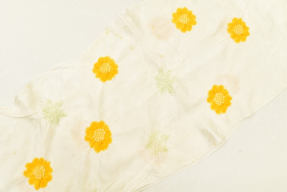 【サイズ】帯締め:長さ145cm(房除く) 幅1.4cm 帯揚げ:長さ152cm 幅25.5cm 【素材】帯揚げ 正絹 帯締め 正絹 【商品説明】白色の帯揚げと帯締めのセットです 【全体ランク】 AA~A 【シミ汚れ等の状態】 帯揚げ:糸ひけあります。全体的にシミ汚れが多数あります。(写真①) こちらの商品は、メール便発送となりますので、他の商品との同梱はできません。 | |