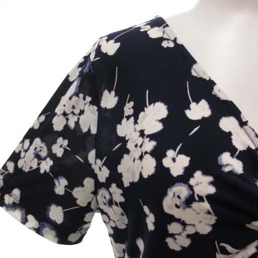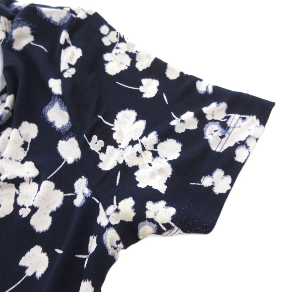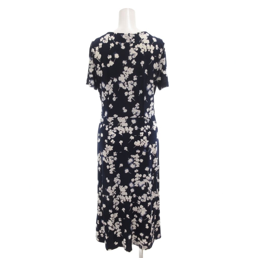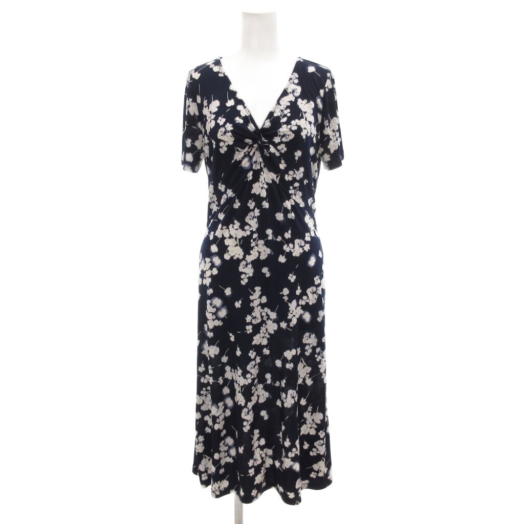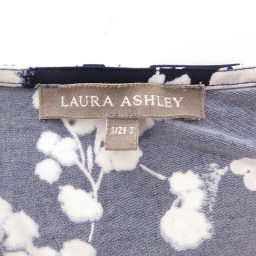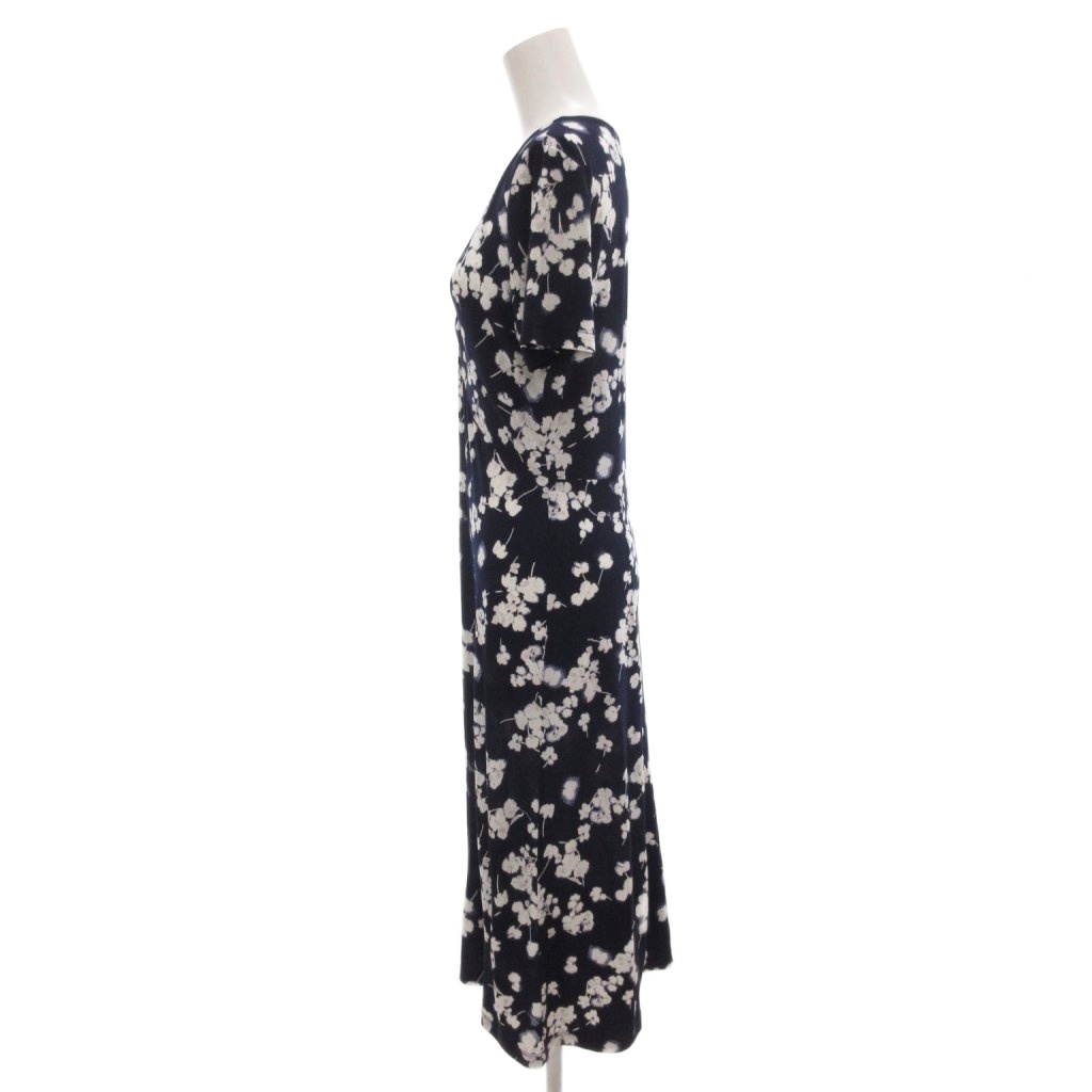 ローラアシュレイ LAURA ASHLEY ワンピース Vネック 総柄 半袖 ミモレ ロング 7 紺 ネイビー /AE レディース