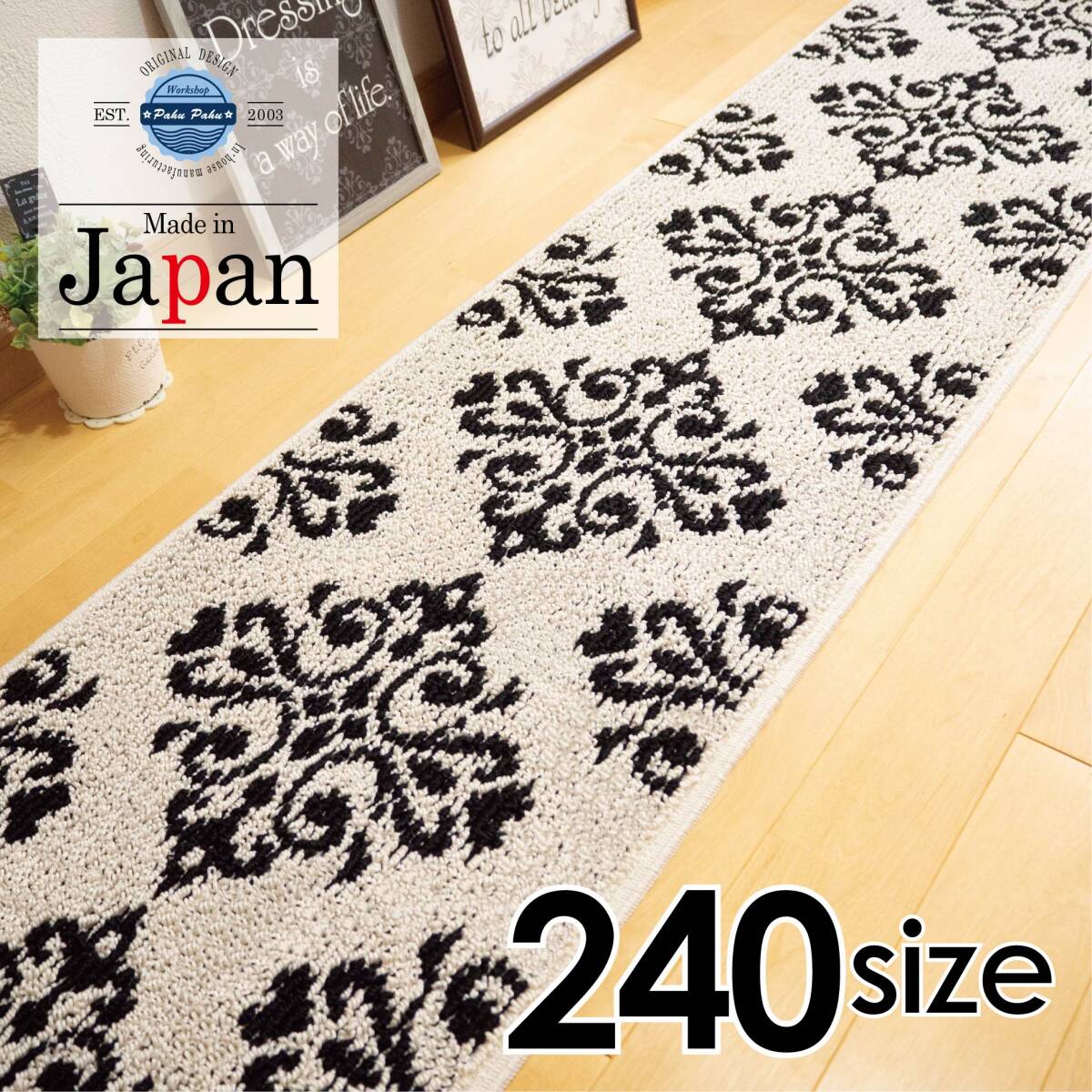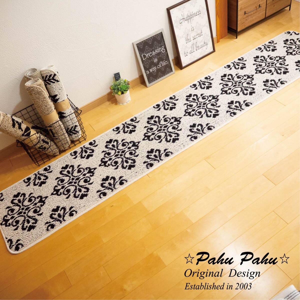 【サイズ】 約45x240cm 【色】 ベース部分 白に近い薄いベージュ 柄部分 ブラック 【組成】 ポリプロピレン ポリエステル その他 【その他】 すベりにくい加工済 |