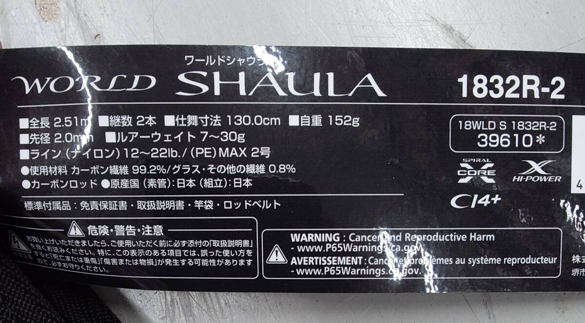 シマノ★SHIMANO 18ワールドシャウラ 1832R-2 2ピースロッド