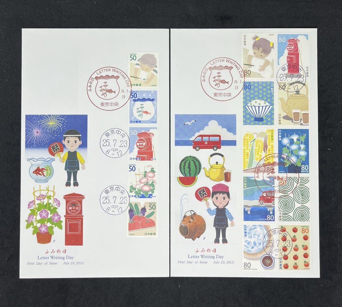 ふみの日 50円5枚貼と80円10枚貼の2枚セット
