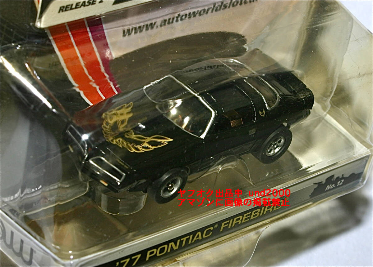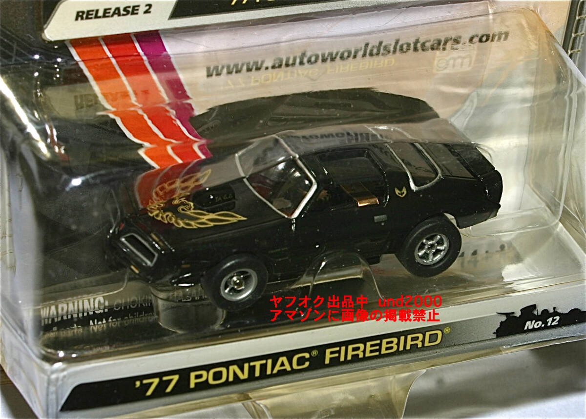 Round 2 (Auto World )、X-Traction Racers Release 2 - No. 12、'77 Pontiac Firebird。スモーク・ウィンドー。スケール HO、全長約7センチ。2007年ごろのモデル。当初、Johnny Lightning での発売告知では、映画 「トランザム7000」 の版権あり、劇中車仕様でしたが、会社がRC2(Racing Champions、Ertl)に買収、さらにスロットカー・ブランドがRound2に再買収され、Auto World での発売時には無版権モデルとなりました。(後に正規版権モデルも発売されています。)並行輸入品。未開封、長期保管品。ブリスターに変色があります。未開封品に付き、現状扱いノークレームでお願いいたします。お支払いはヤフーかんたん決済のみ。東京発、ゆうパック持込60サイズ(東京700円 - 沖縄1330円)、レターパックプラス600円、または定形外郵便 (追跡番号、保険無し)450円の発送となります。(上記の送料はこの出品物のみの料金となります。複数落札、同梱包発送の場合、重さ、サイズが変わりますので送料が変わります。)3日以内のご連絡、かんたん決済の支払期限内(通常5日、支払方法により異なります)のお支払い厳守でお願いします。入札される前に「自己紹介」もあわせてお読みください。 検索用ワード Smokey And The Bandit Slot Car ファイアーバード