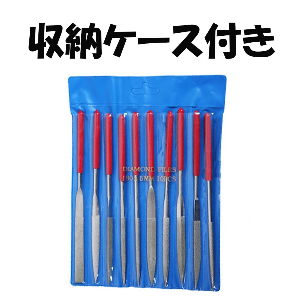 ダイヤモンドヤスリ10本セット 木工用 鉄工用 金属用 プラスチック用 セラミック用 ガラス用など あらゆる加工に対応できるシャープナー 何を揃えたらいいか分からない方 棒やすりセットをお探しの方 初心者の方にもオススメなDIY工具です 平・半丸・丸・三角・楕円形状で 手のひらサイズ 細かい作業に適しています 作業用途 研磨、研削 バリ取り ケバ取り サビ取り 面取り ハンドメイド DIY プラモデルに |