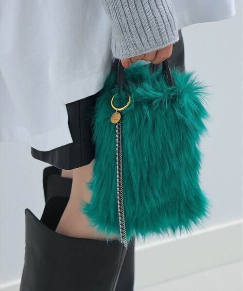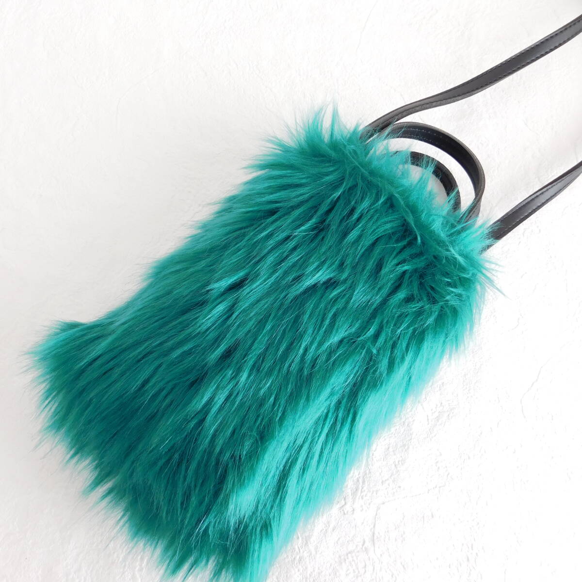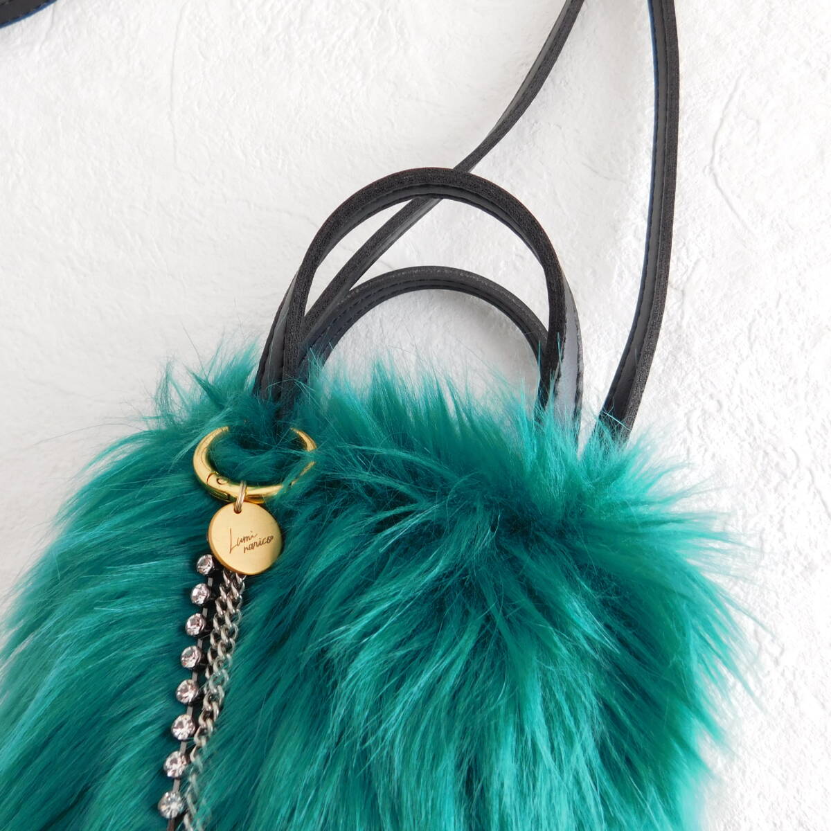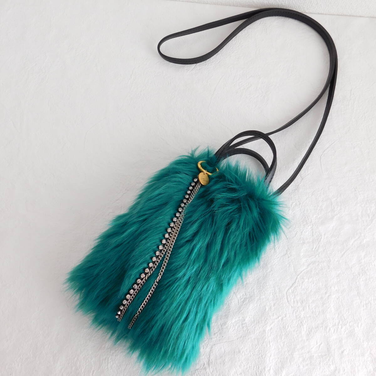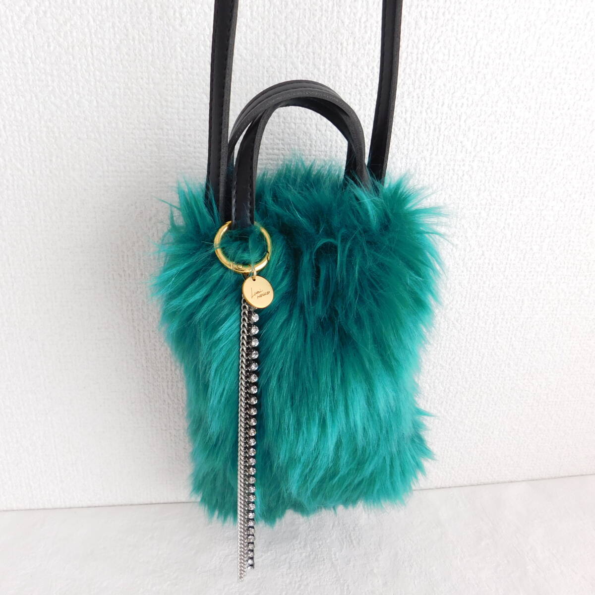 ★グリーンカラーのふあふあのフェイクファーがかわいいです。