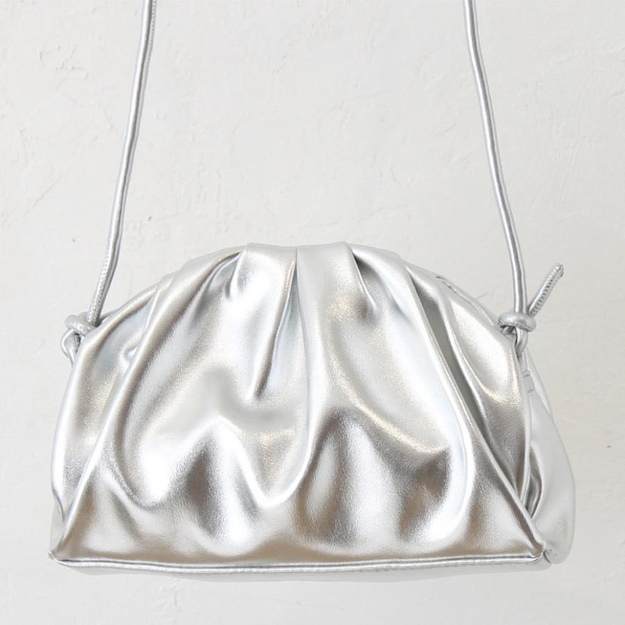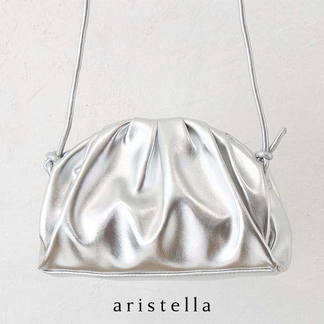 新品 合皮半月タックショルダー aristella シルバー 2042