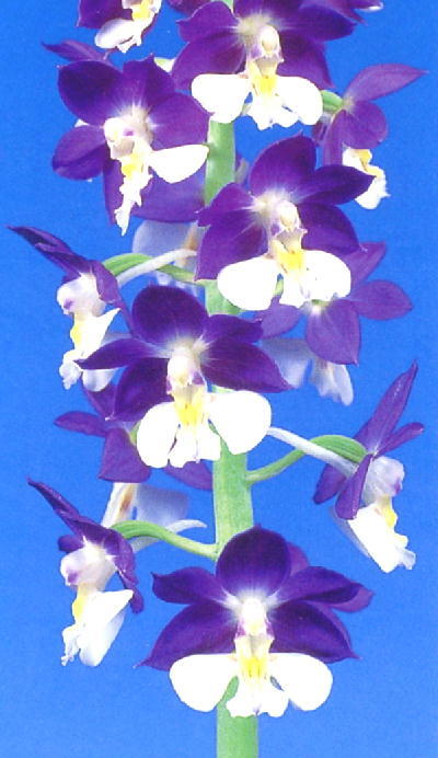 花の特徴:濃いブルー青紫弁に白の舌  葉質もそうですが花も丸みを帯び若干の肉質感があります 毎年安定した発色を魅せて楽しませてくれる丸花の中輪花  育てやすくえびね初心者の方でも容易に栽培出来るかと思います