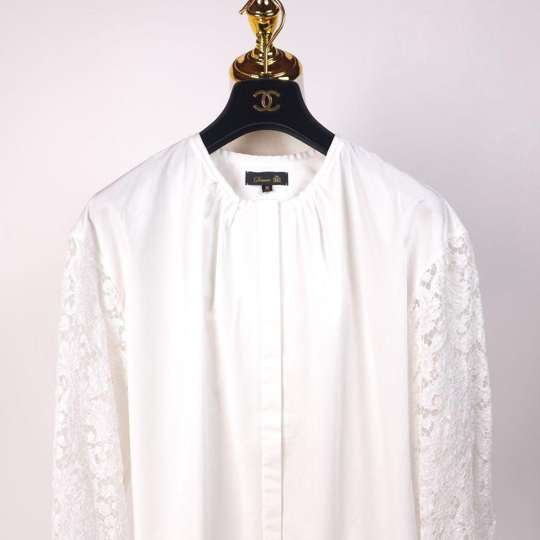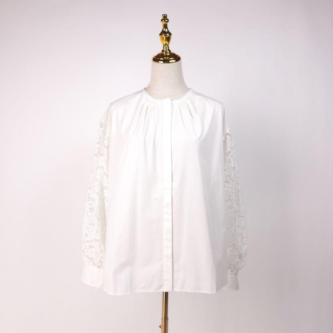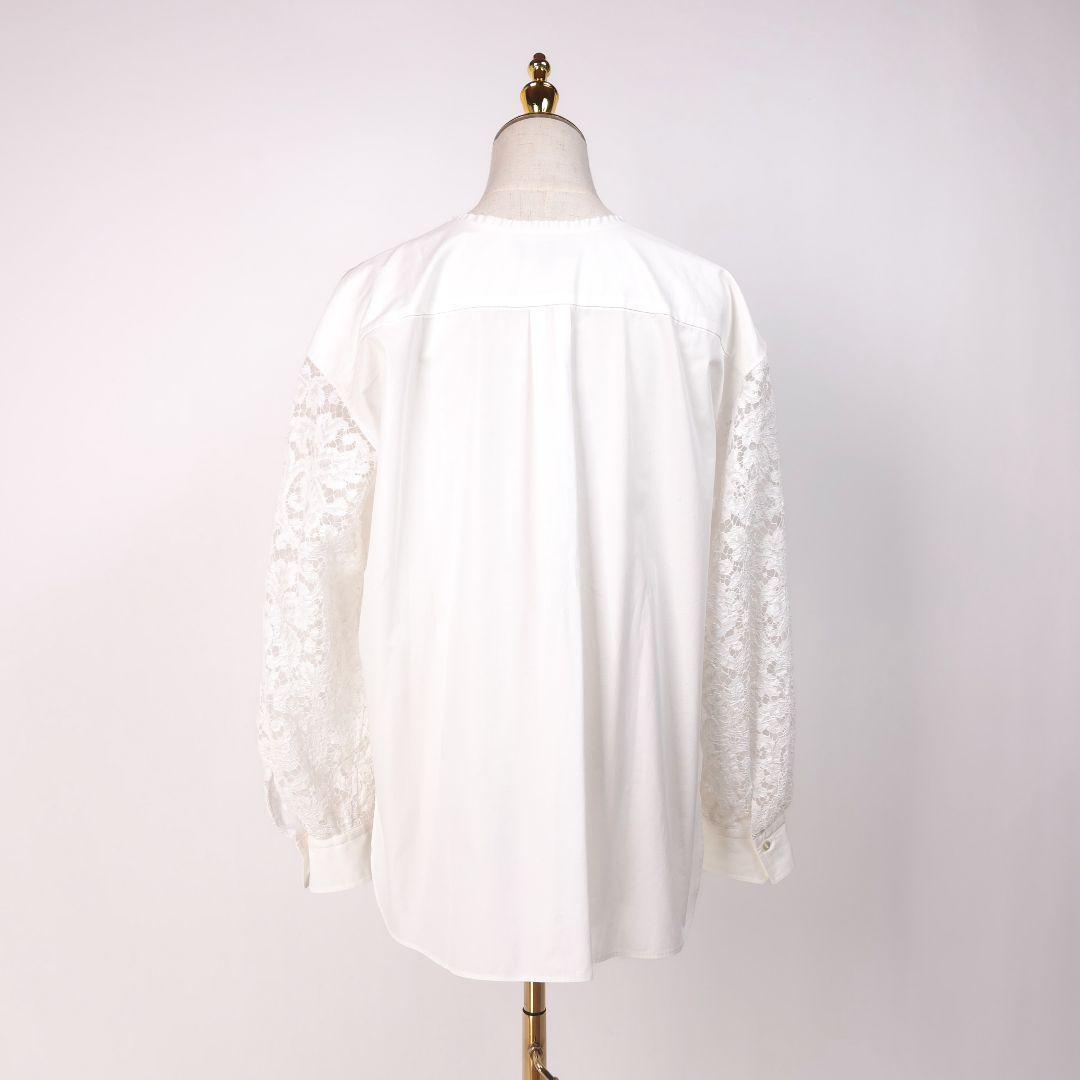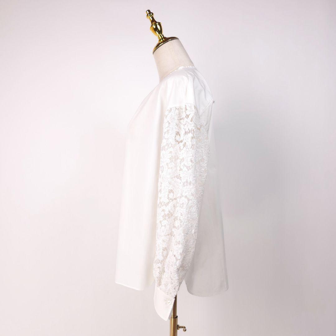 【新品同様】ドゥロワー 袖レース ブラウス ホワイト 36 2025 コットン Drawer
