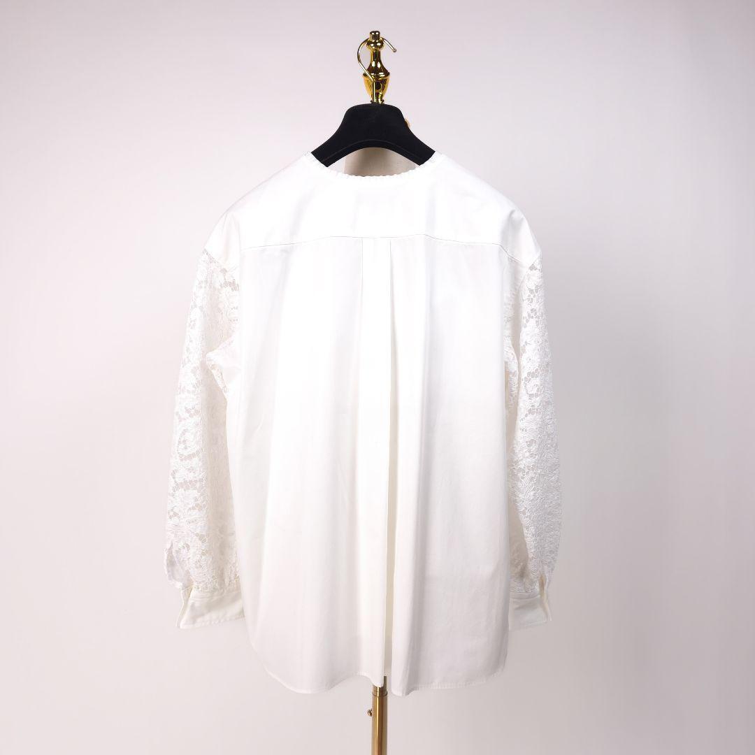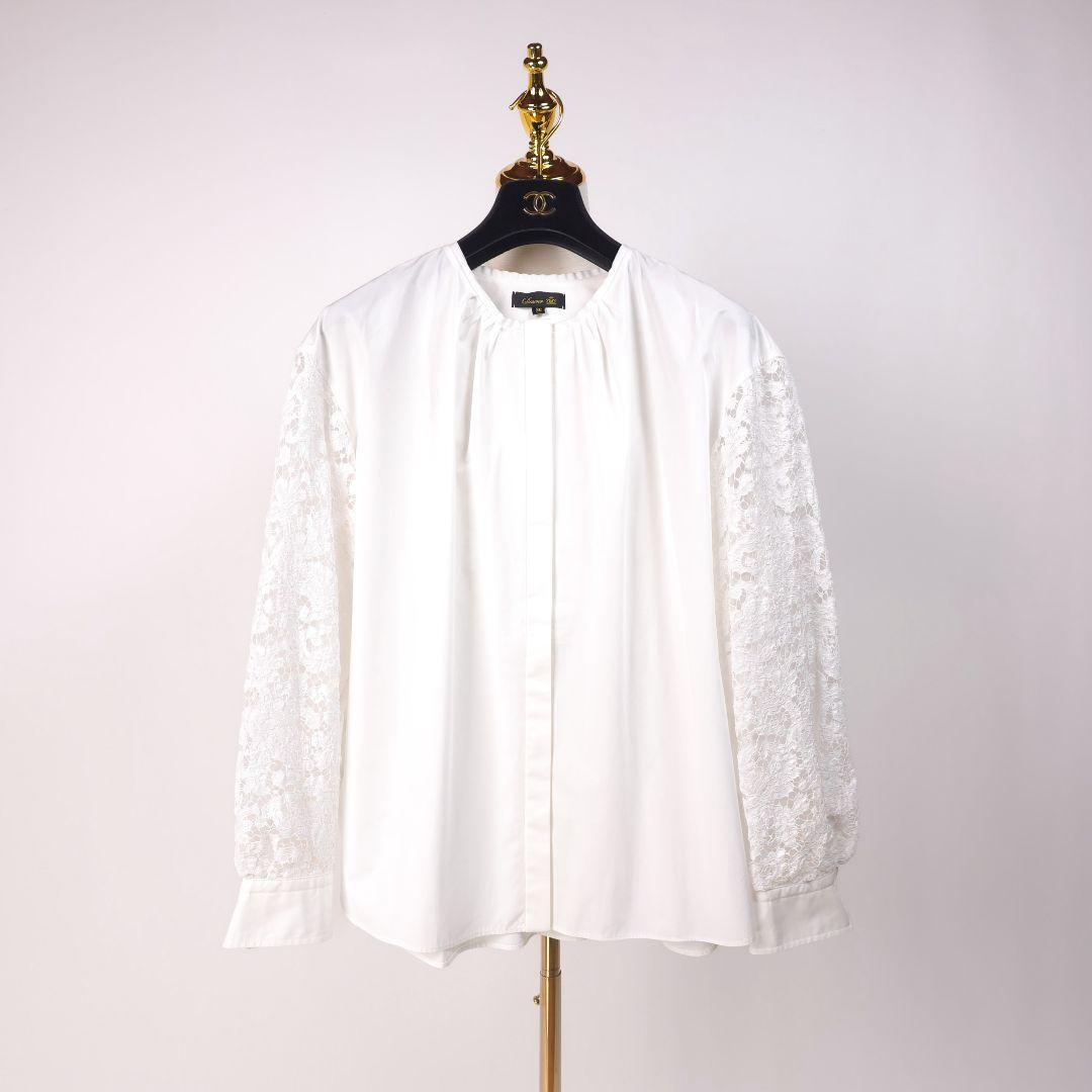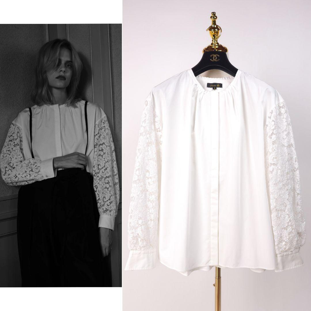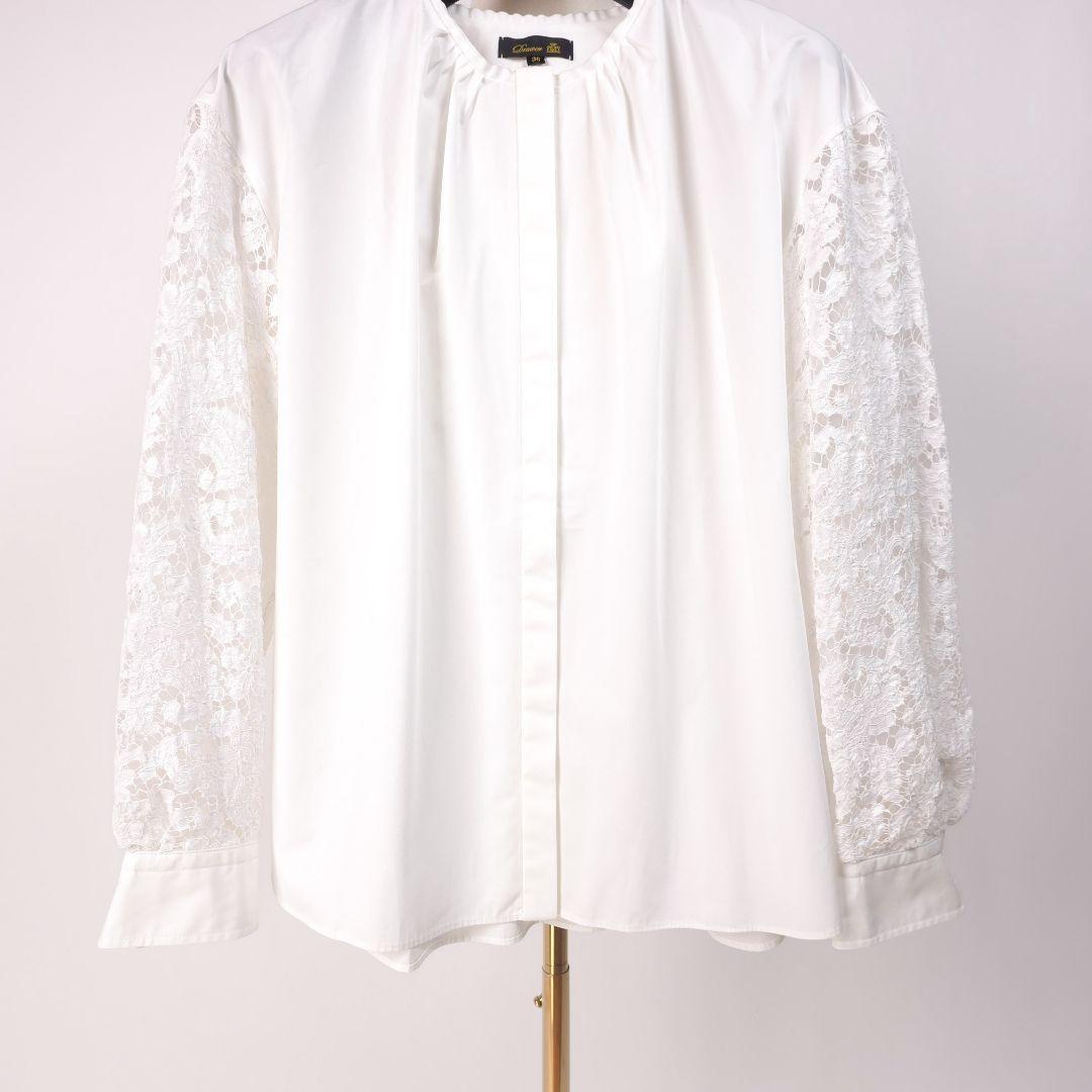 【新品同様】ドゥロワー 袖レース ブラウス ホワイト 36 2025 コットン Drawer