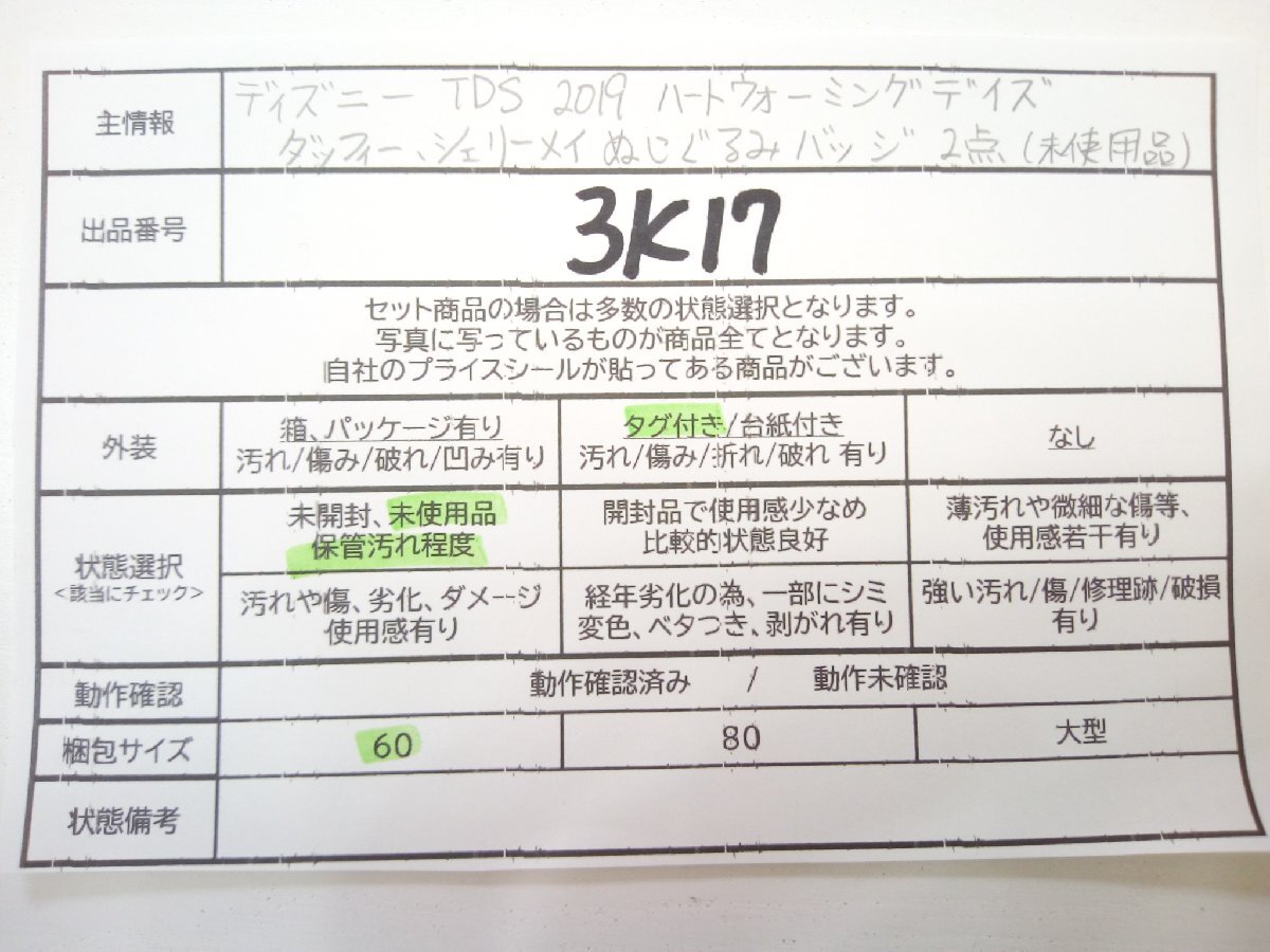 A:未開封、タグありの美品、埃程度の汚れが御座います。