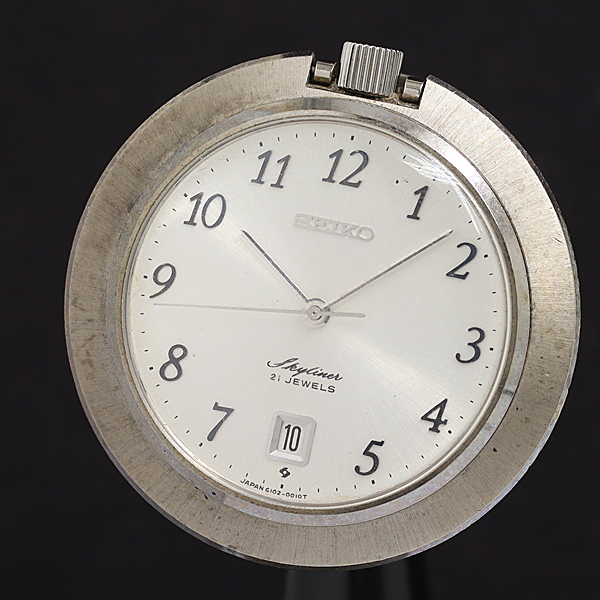 1円 稼働 セイコー スカイライナー 6102-0010 手巻 シルバー文字盤 懐中時計 3835000 9BJY SMZ