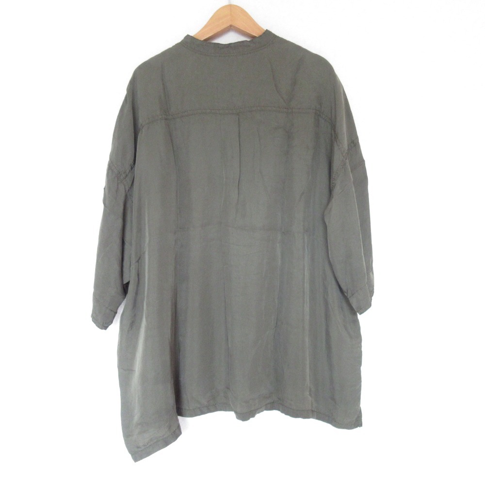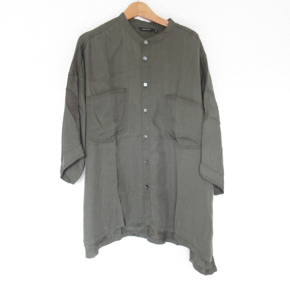 美品 pas de calais パドカレ バンドカラー キュプラシャツ 36 カーキ