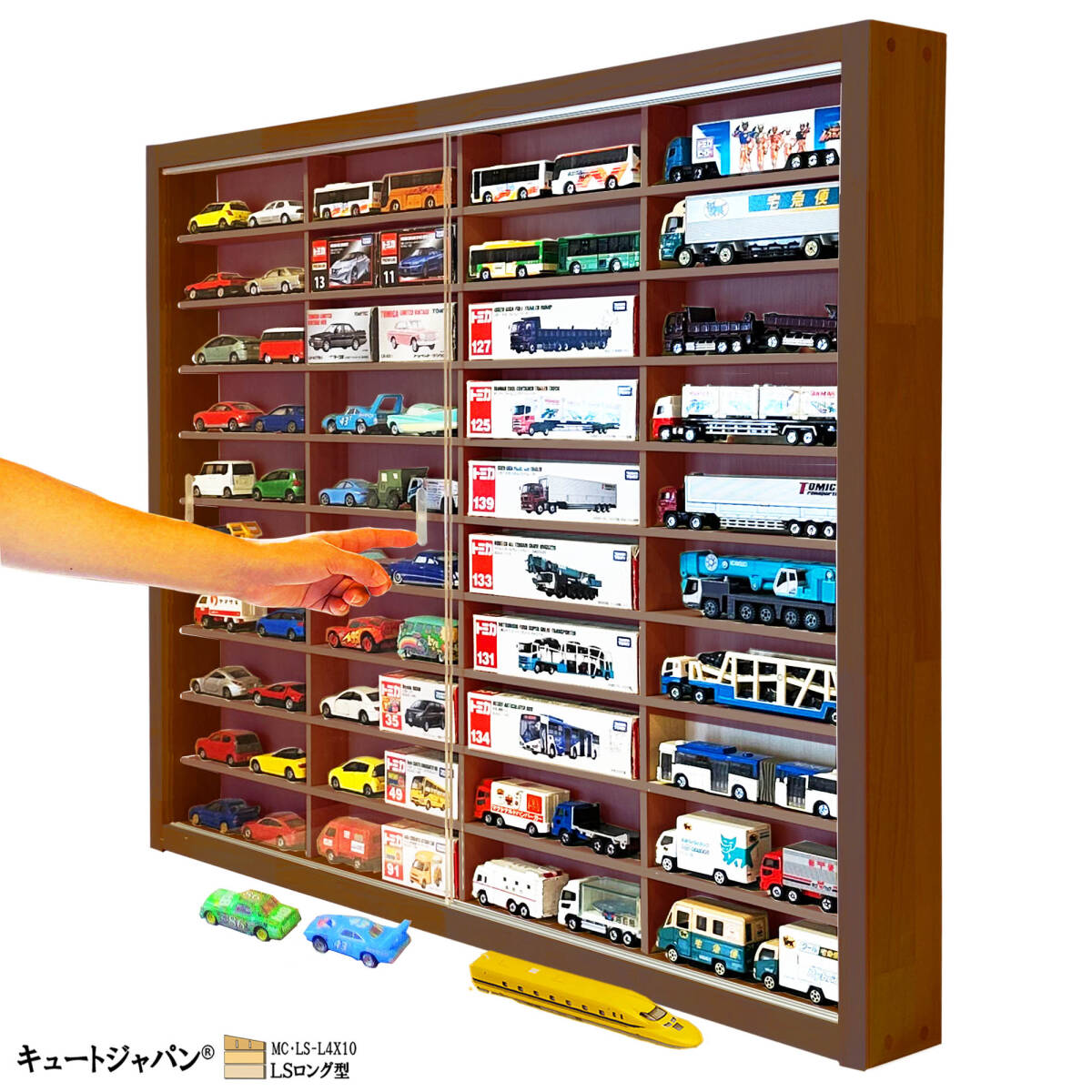 ロングトミカが40台収納可、楽しみながら整理ができるオリジナル製作の新品です。