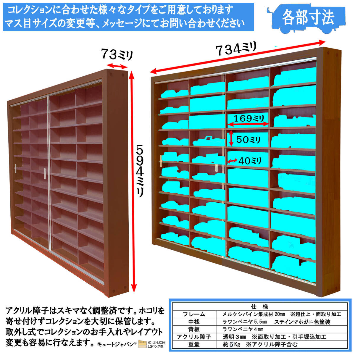 アクリル障子は透明度が高く、大切なコレクションをホコリや傷から守ります。