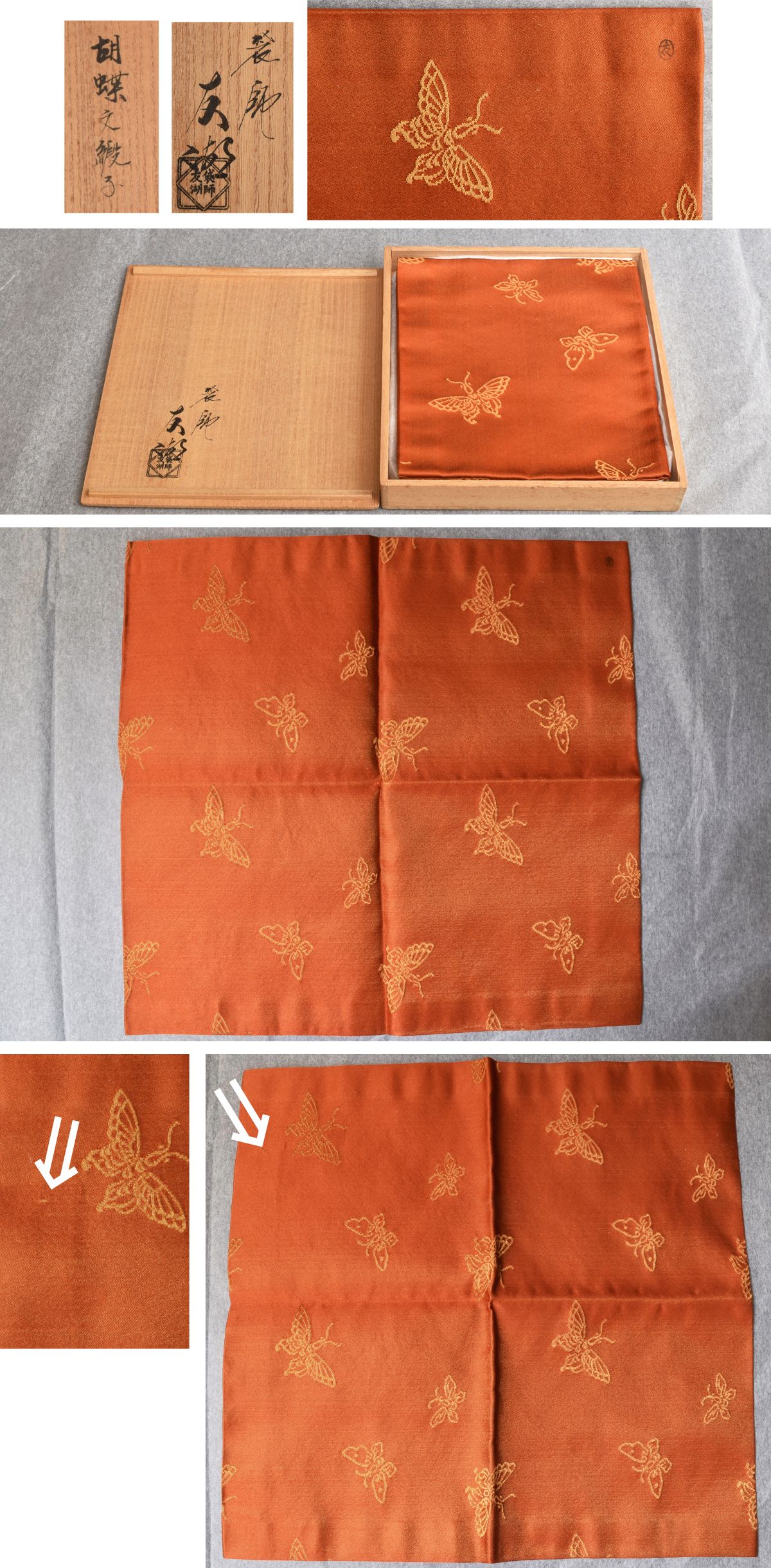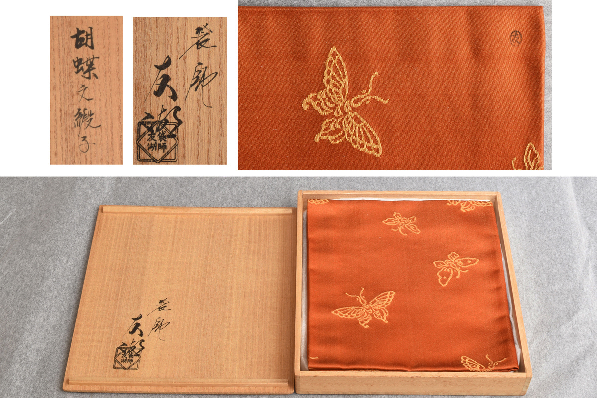 6054 土田友湖 胡蝶文緞子 袱紗 共箱