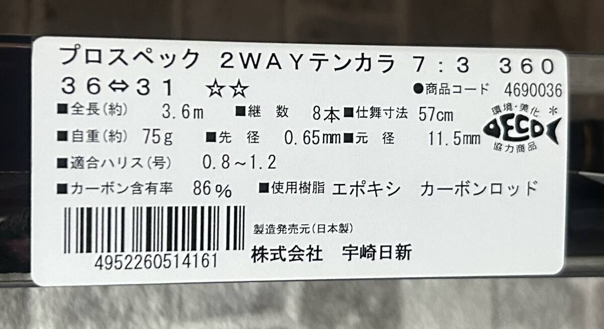 渓流釣りシーズン終盤在庫処分祭・新品・未使用・即決あり 宇崎日新PROSPEC2WAYテンカラ7:3 360定価¥20,800円税込 日本製 MADEINJAPAN