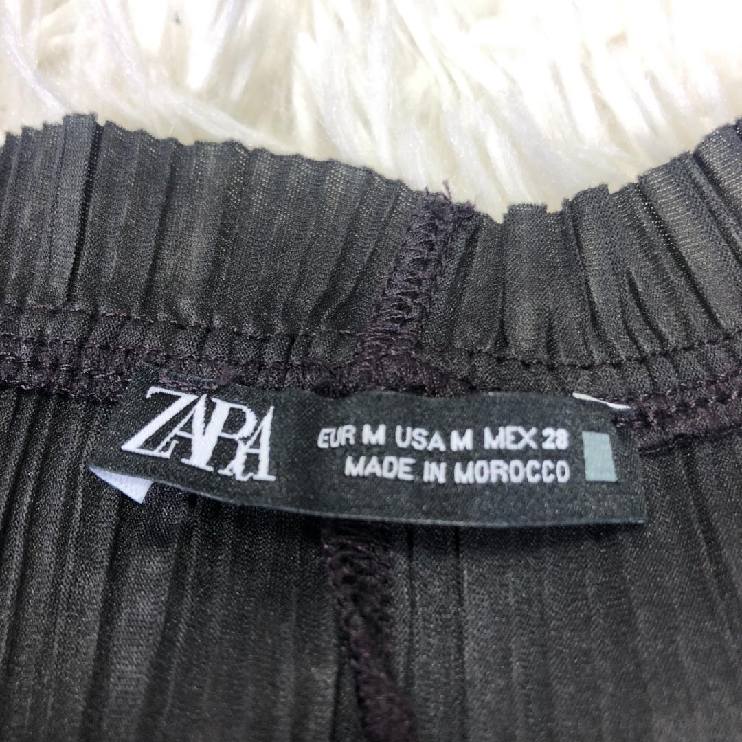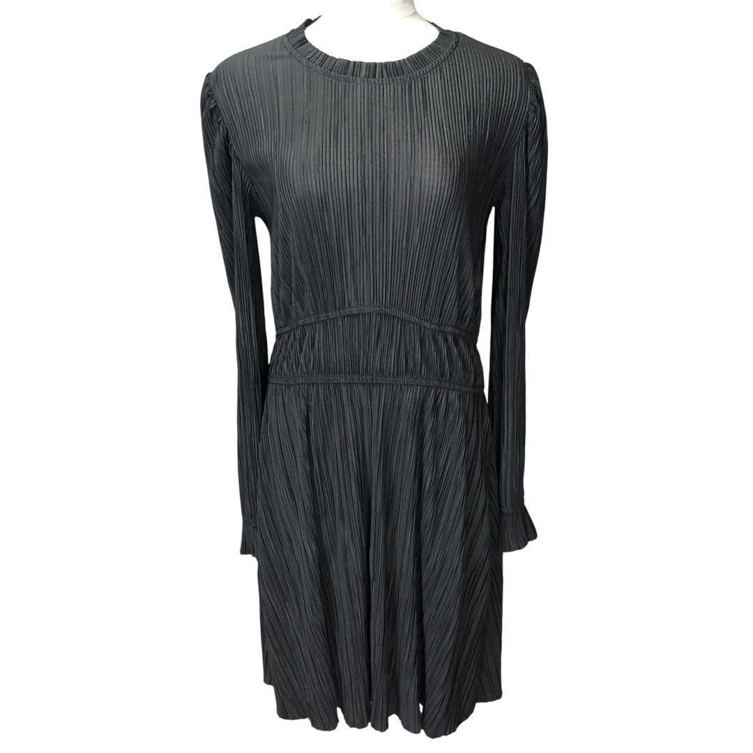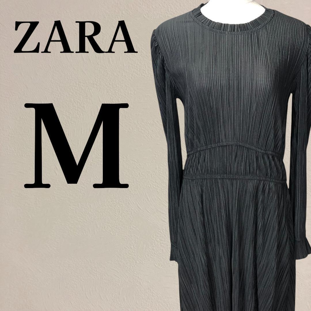【美品】ザラ ZARA プリーツデザイン 膝丈 長袖 ワンピース M ブラック