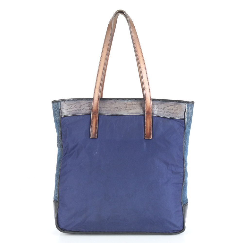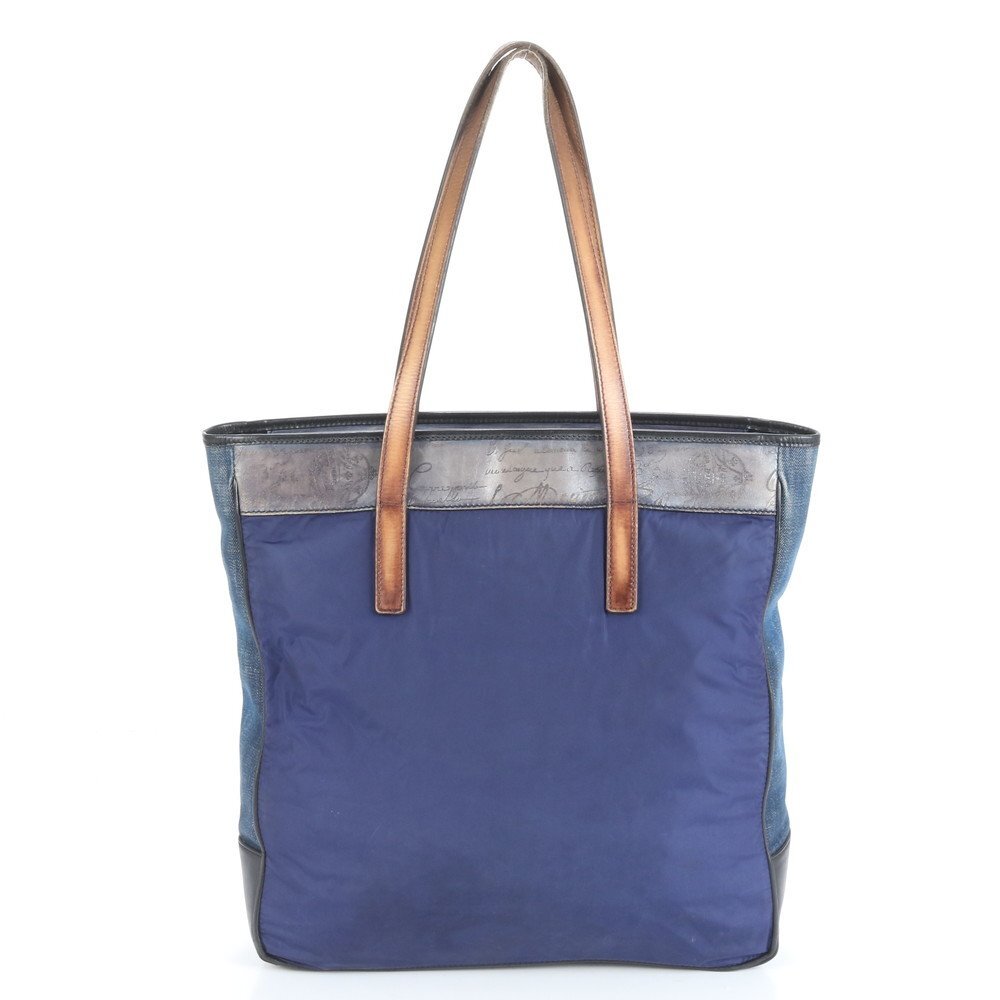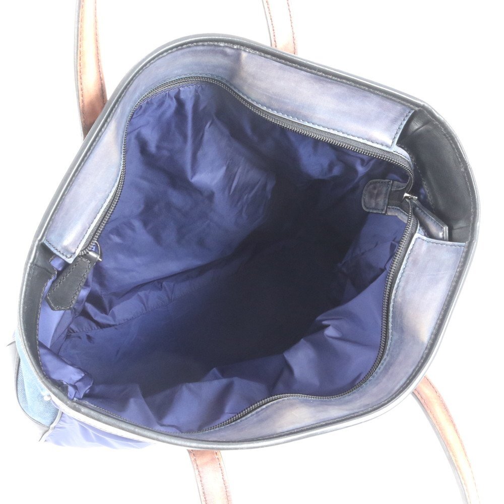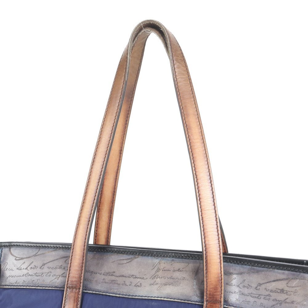 1円■極美品■ベルルッティ■カリグラフィ レザー ナイロン トート バッグ ショルダー 通勤 本革 ブラウン ネイビー A4 メンズ RRM CT13-9