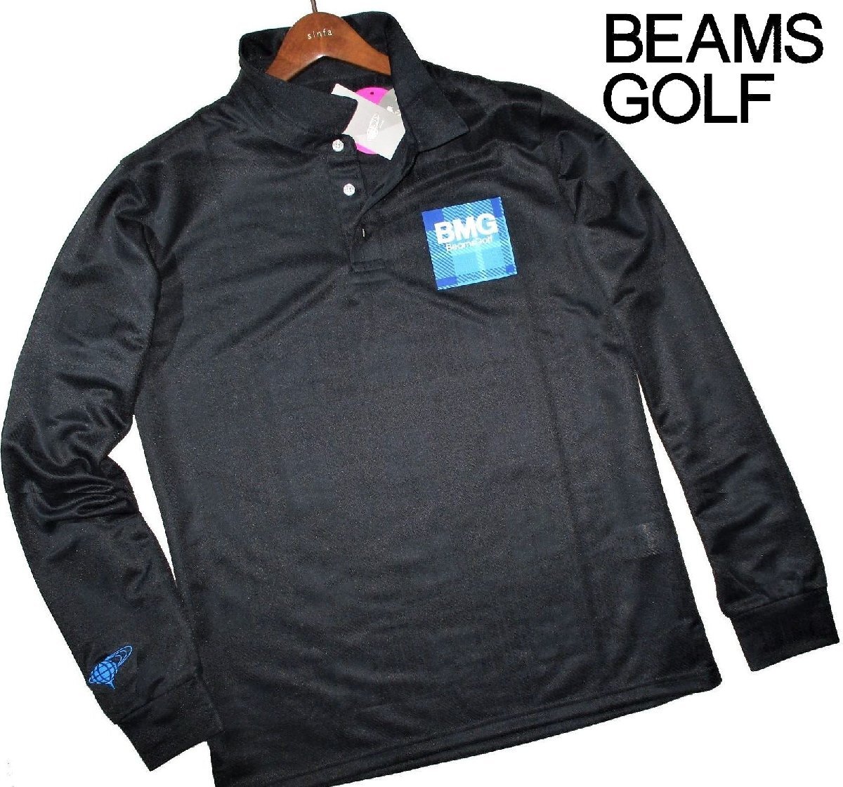 新品ラス1 L 定価1.87万▼ ビームスゴルフ BEAMS GOLF ▼ 日本製 吸水速乾 ポロシャツ 長袖シャツ 長袖ポロシャツ メンズ ブラック 黒