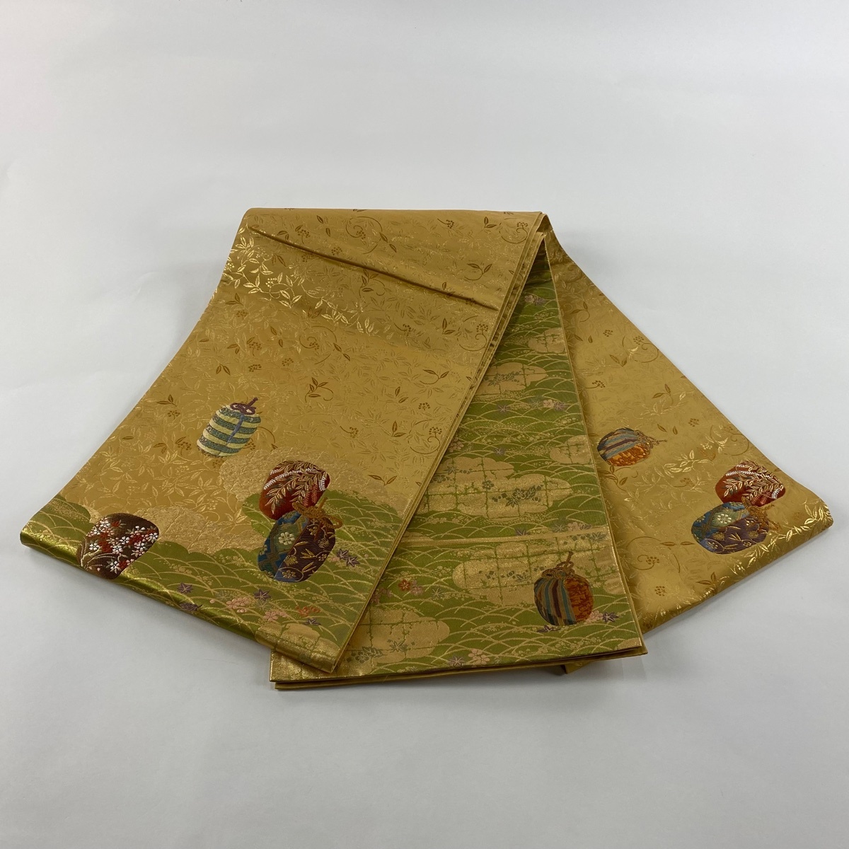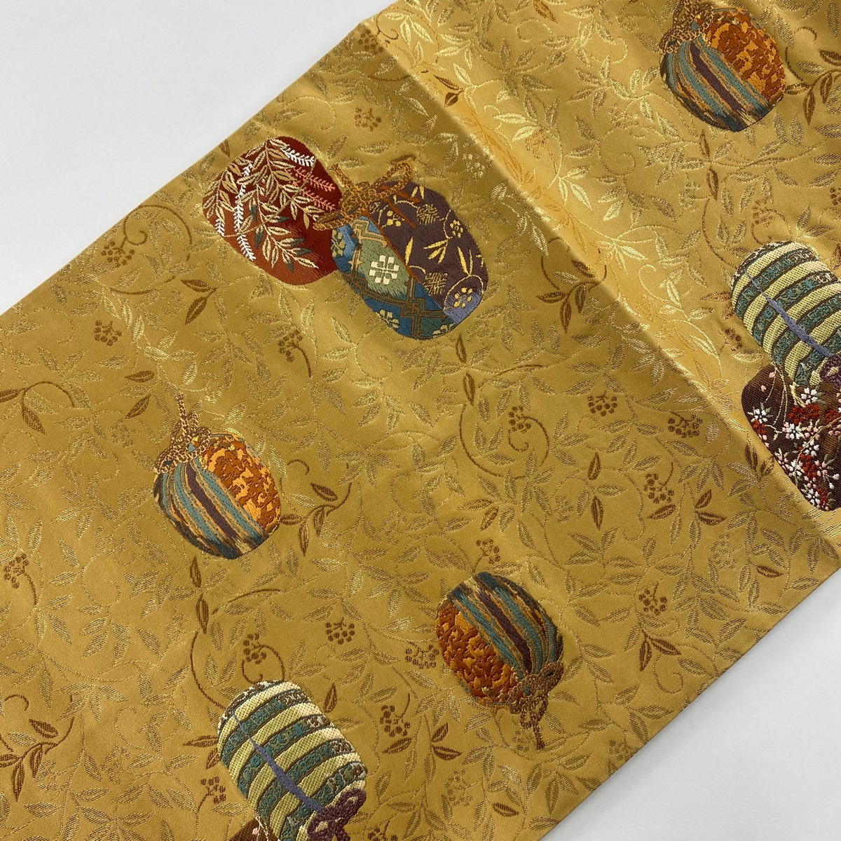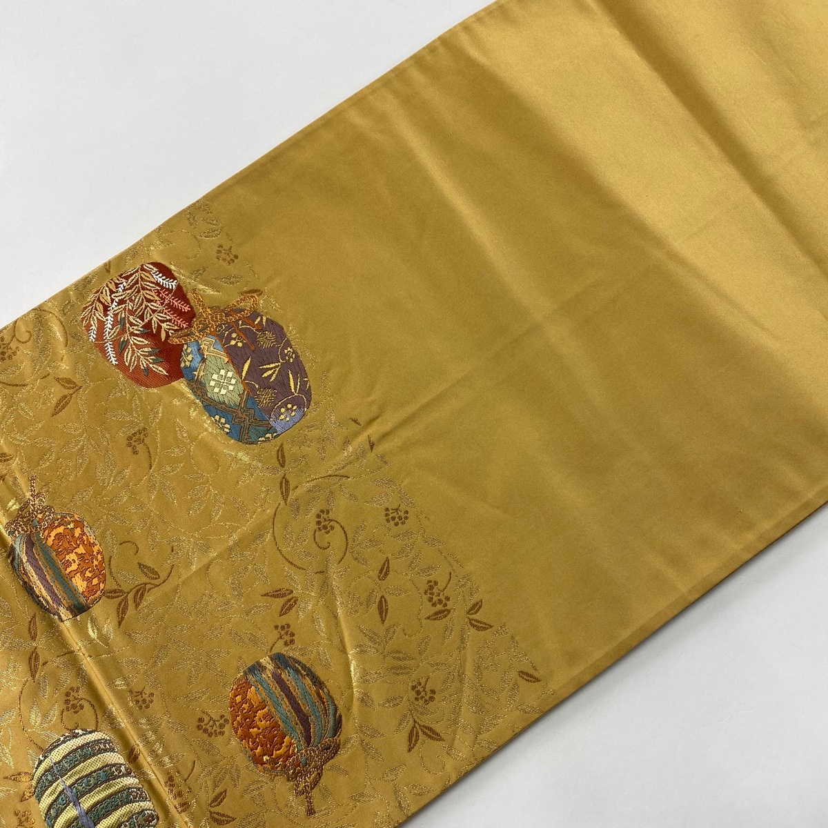 | 袋帯 美品 秀品 お仕覆 雲文 刺繍 箔 山吹色 六通 正絹 【中古】 |